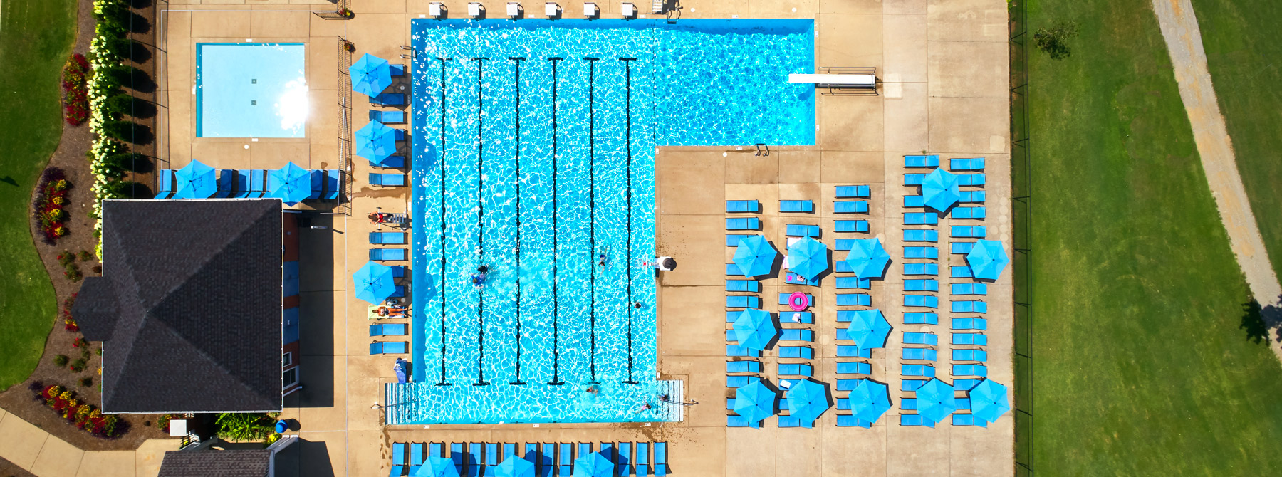 The Blue Marlin pool is our junior-Olympic-sized pool that lets Members swim and relax in the water or out. The Blue Marlin Bar and Grille serves several food options, as well as alcohol. Junior Members can enjoy our kiddie pool, and grownups can take advantage of adults-only swim time. Men's and women's locker rooms, complete with showers, complement our facilities. Also, competitive swimmers can joint the swim team, the Bluegrass Marlins, to swim against other local teams.