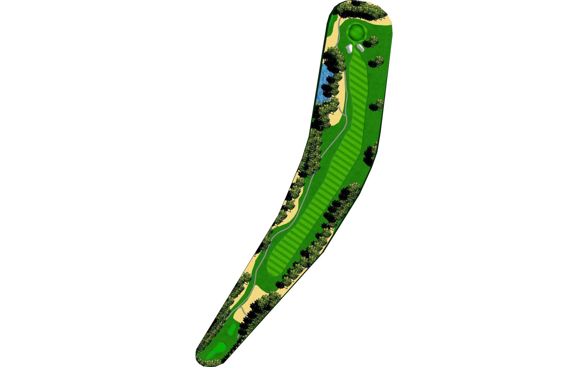 Aggressive and long tee shots with a driver from an elevated tee box puts players in the best possible position to attack the elevated green. Majority of the players will be hitting a blind second shot from a severe uphill fairway that prevents golfers a glimpse at the green. A small pond catches most missed shots that come up short and to the right of the green.