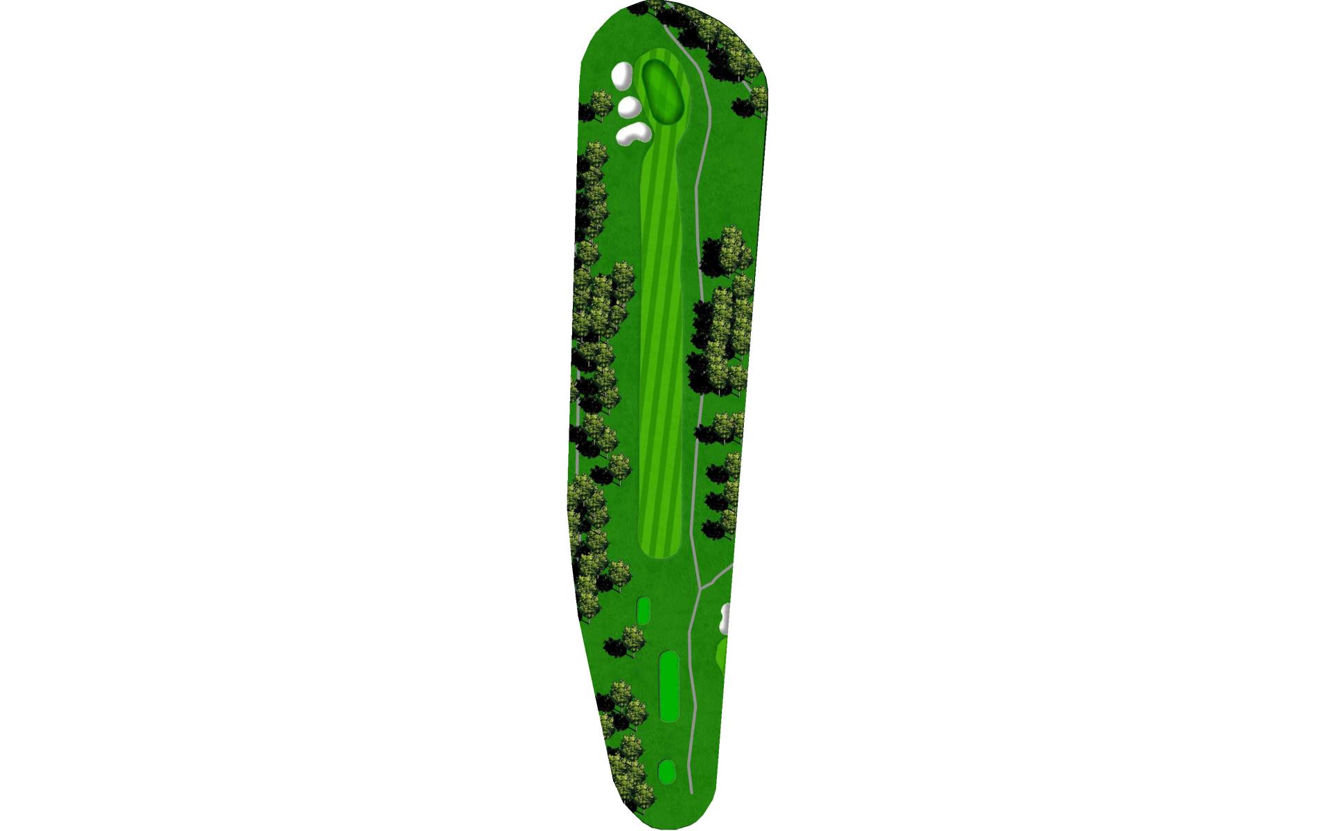 Hole number twelve is a dog leg right par 5 that has a pretty tight tee shot with trees down the right hand side. A drive down the left center fairway leaves the second shot open with no tree trouble. The bunker on the right hand side is intentionally pushed forward to catch any shots mishit right. 100 yards out in the right fairway leaves a shot to a wide open green. The miss is short right of the green.