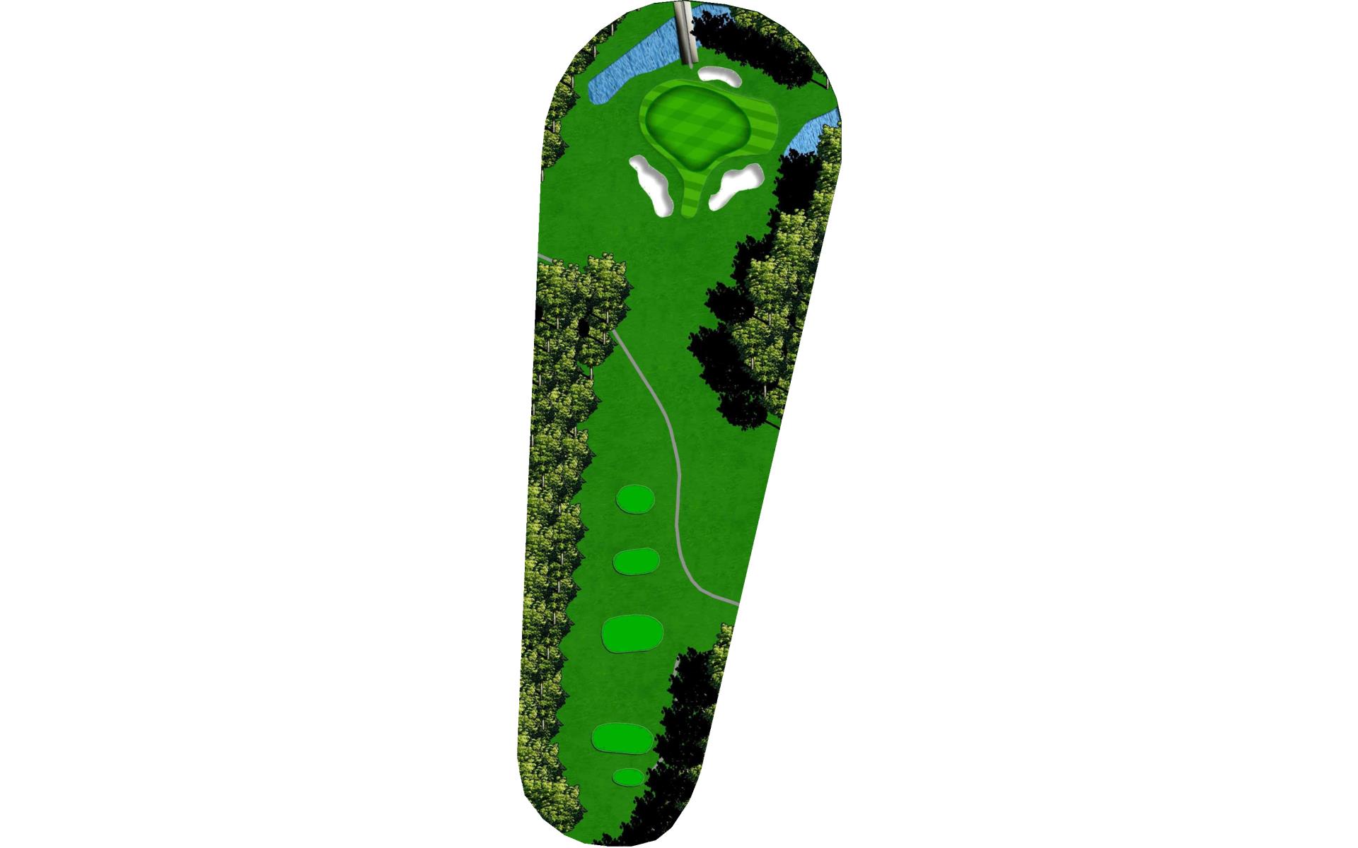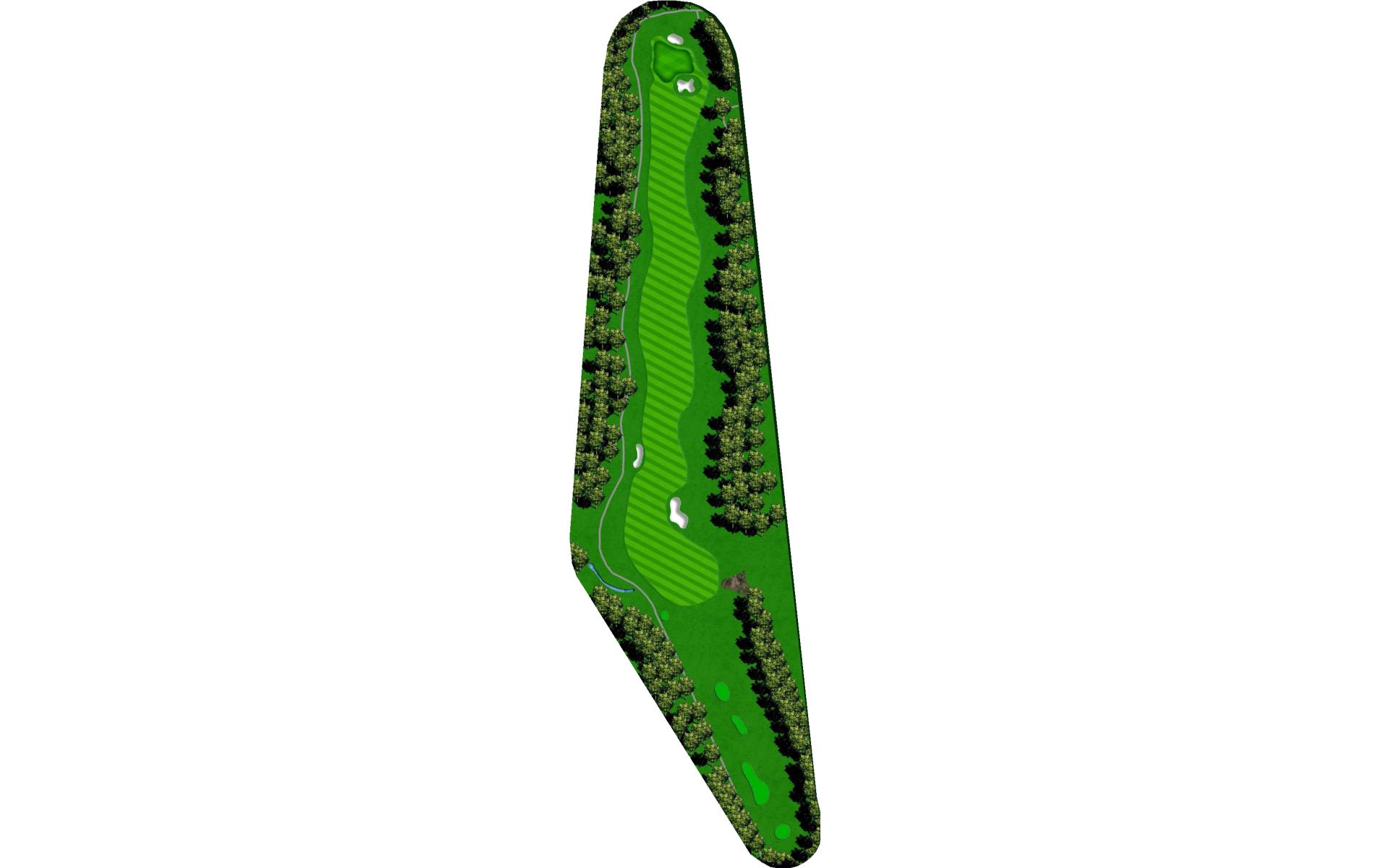 The fairway bunkers on the right side of the fairway are in play for long hitters on this par 5. The fairway bends slightly right on its way to the green that slopes down from back-to-front. A bunker in the front-center of the green must be avoided.