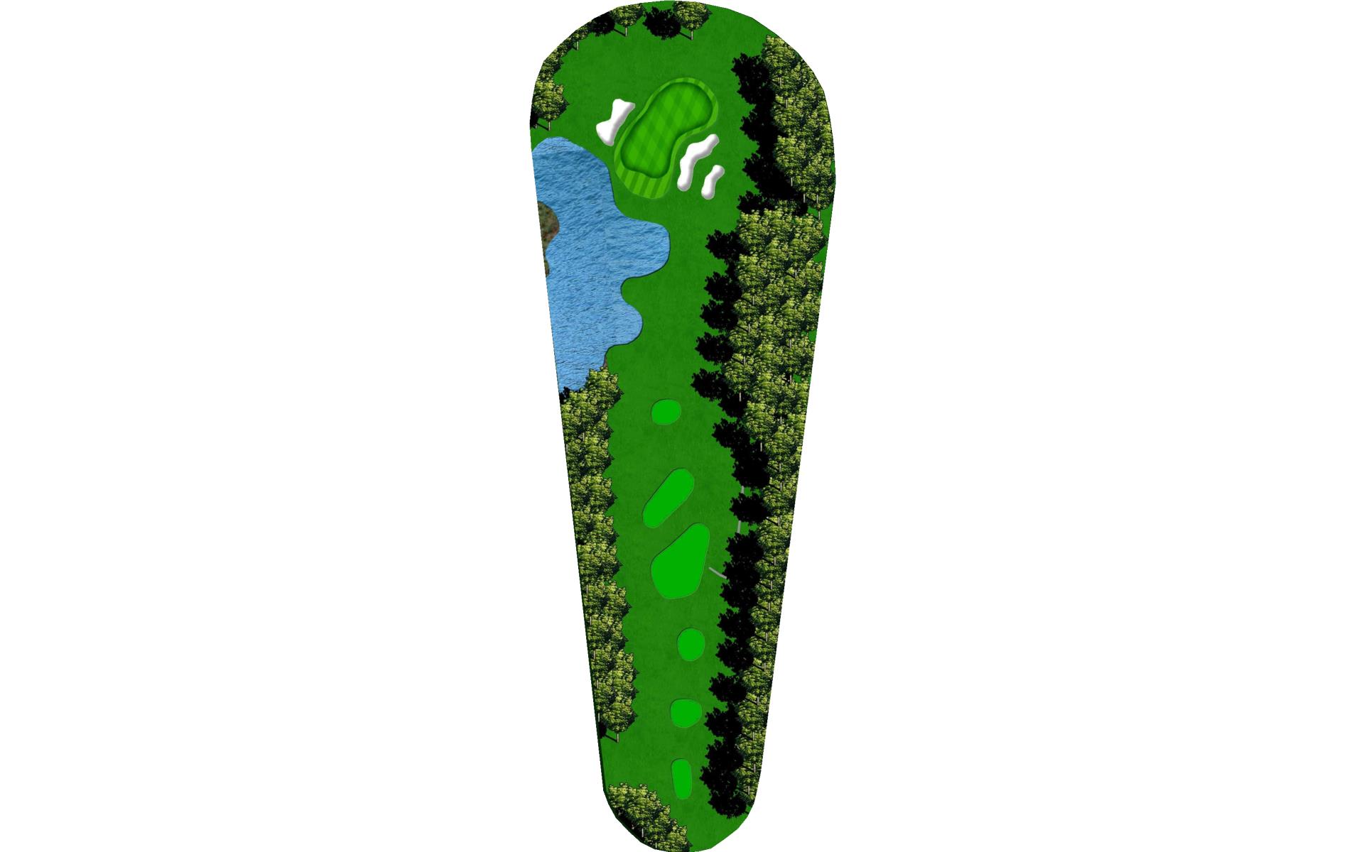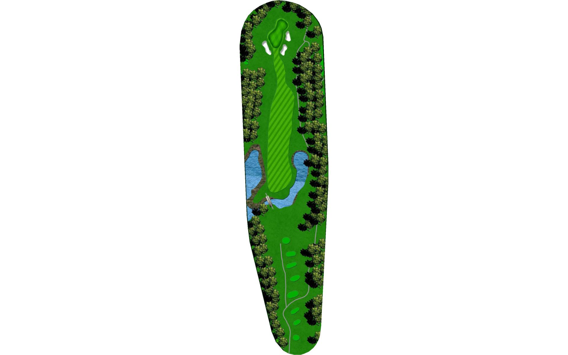 The back nine begins with a picturesque par 4 that features a lake on both sides of the tee. The landing area is wide, but players will notice a prominent tree in the middle. The approach is flat into this large green complex.