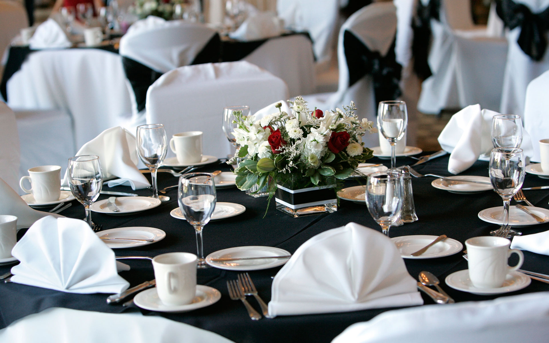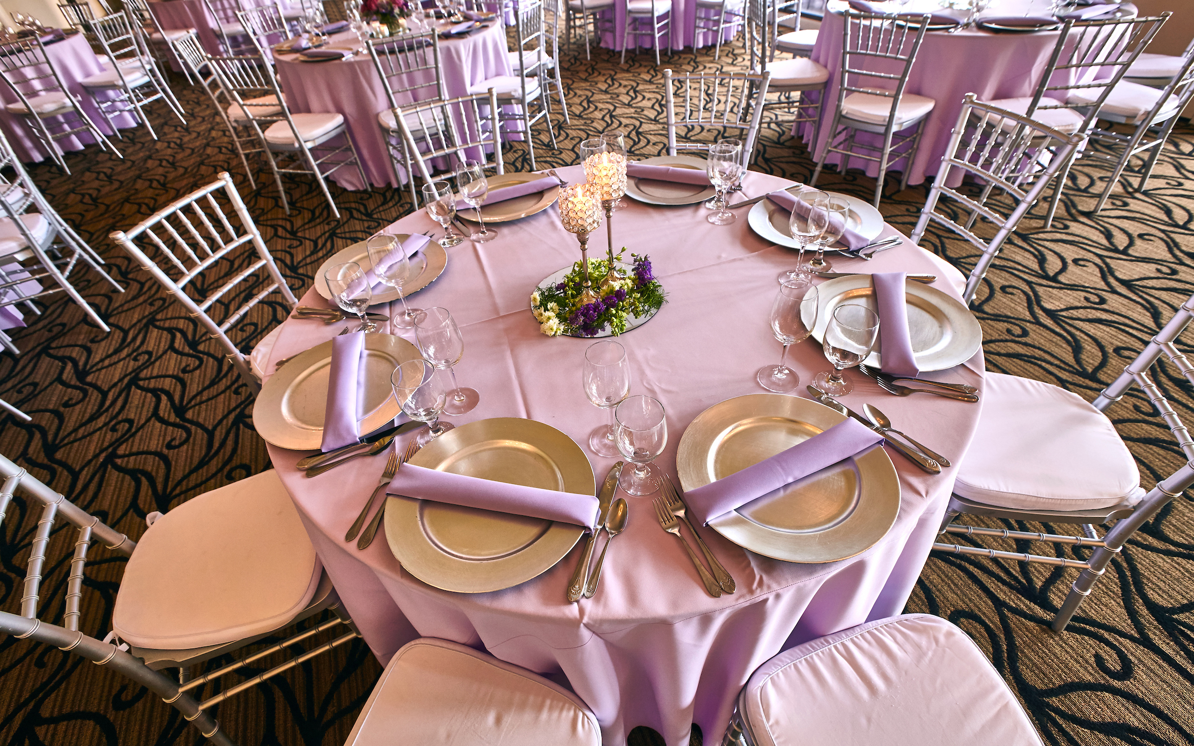 Each of our 6 private event rooms has its own unique and elegant touches with romantic chandeliers, cozy fireplaces, classy bars, and breathtaking views of the redwood-strewn golf course.