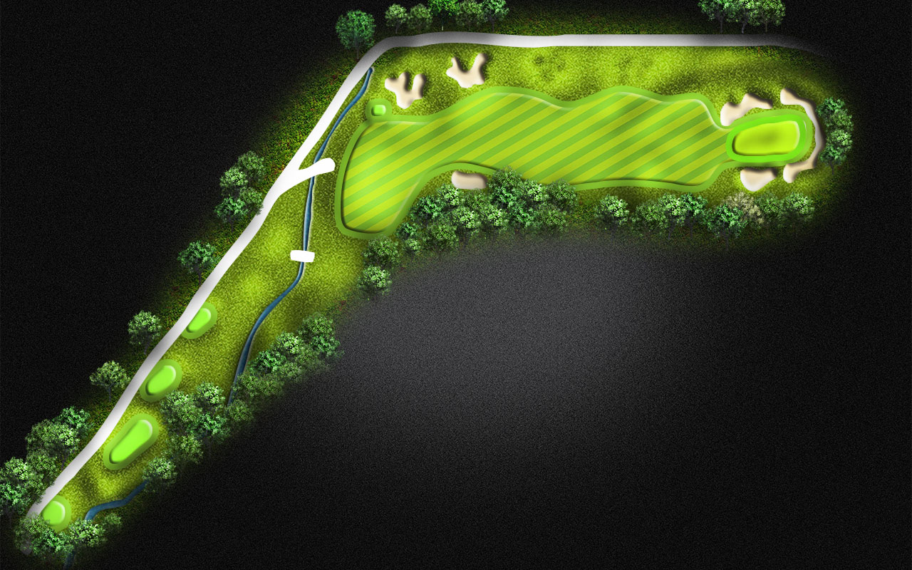 Usual wind will be right to left on this Par 4. Stay away from the creek on the left.