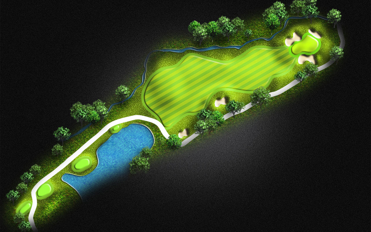 You cant see the water crossing the fairway from this tee on the Par 5. Play a precision drive and you may be able to reach this green in 2 with the downwind elements.