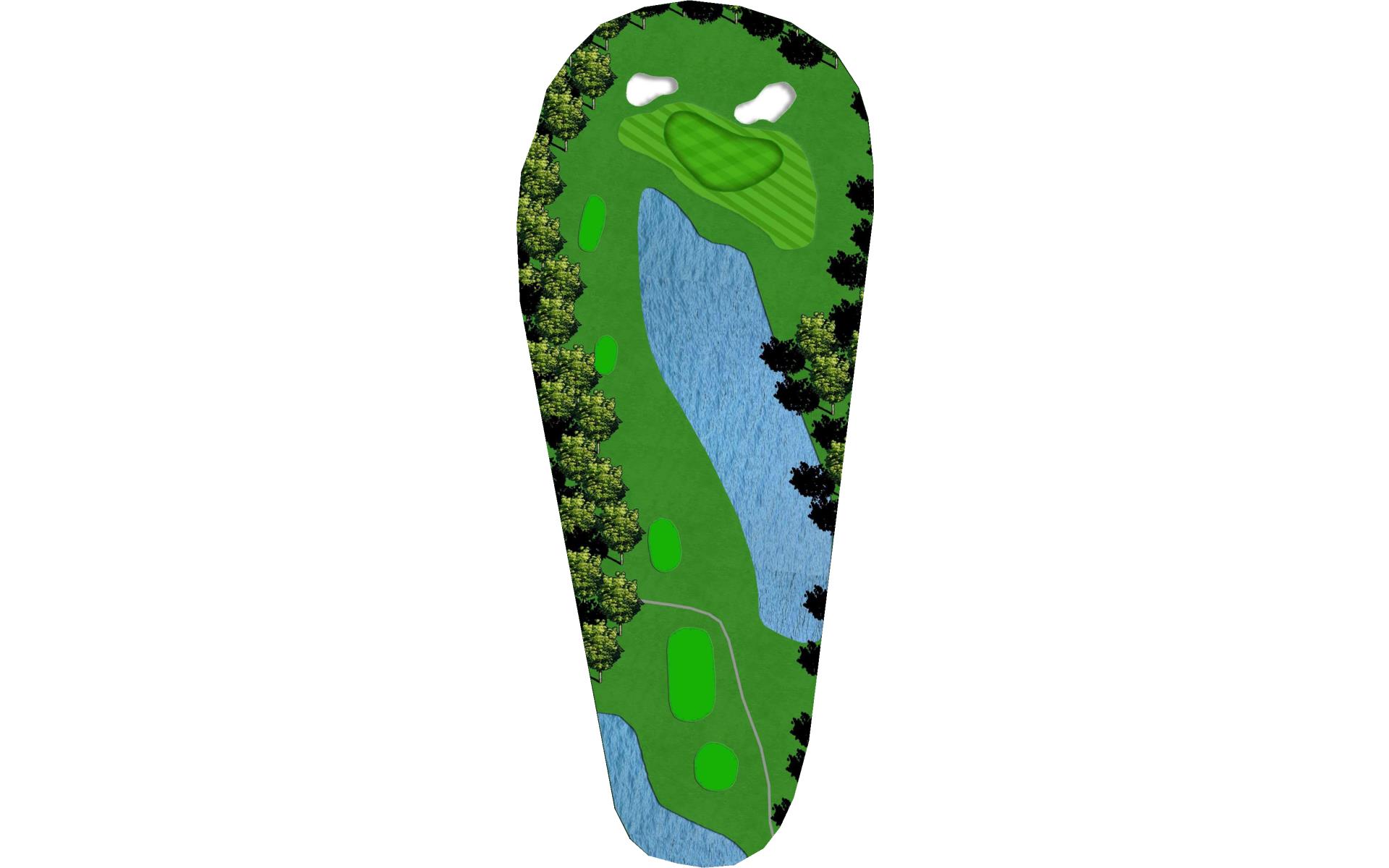A demanding and intimidating straightaway par 4 with OB left and water on the right. The fairway is roomier than it may appear so let go of the steering wheel and let her rip.