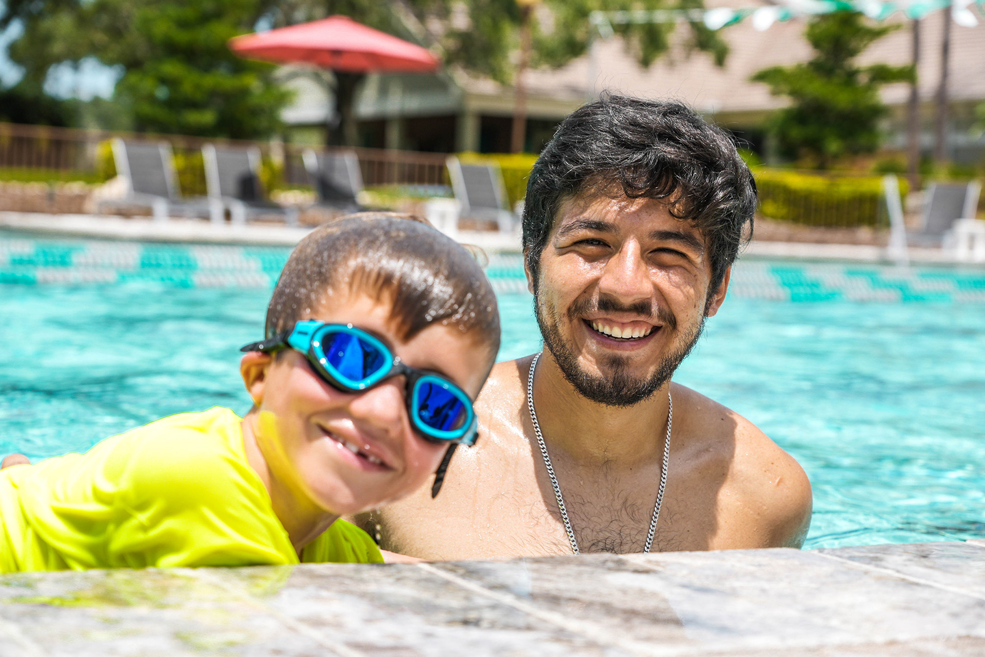 The resort-style pool at Hunter's Green is a great place to unwind and rejuvenate after a challenging workout or a day spent on the golf course. With a water slide and a kids' splash pad, the pool offers entertainment for all ages. For those looking to relax in luxury, there are poolside cabanas to lounge in and bask in the Florida sunshine.