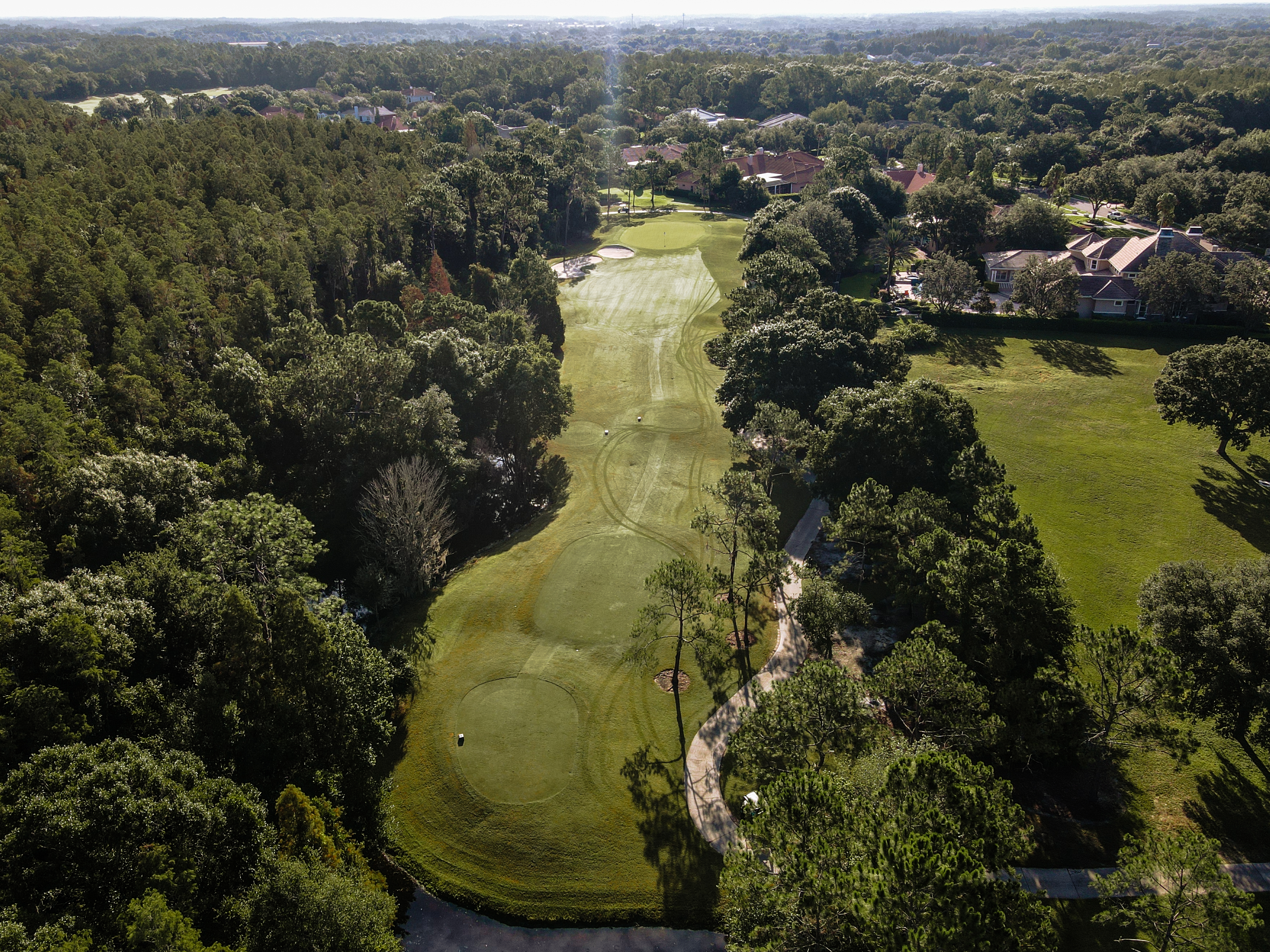 The No. 1 handicap hole for a reason. The tee shot requires precision and narrows right at 270; choose a short tee shot if you are not comfortable hitting the narrowing fairway. The green is tucked back right along the wetlands requiring a long- to mid-iron shot into the green that slopes left to right toward the hazard.