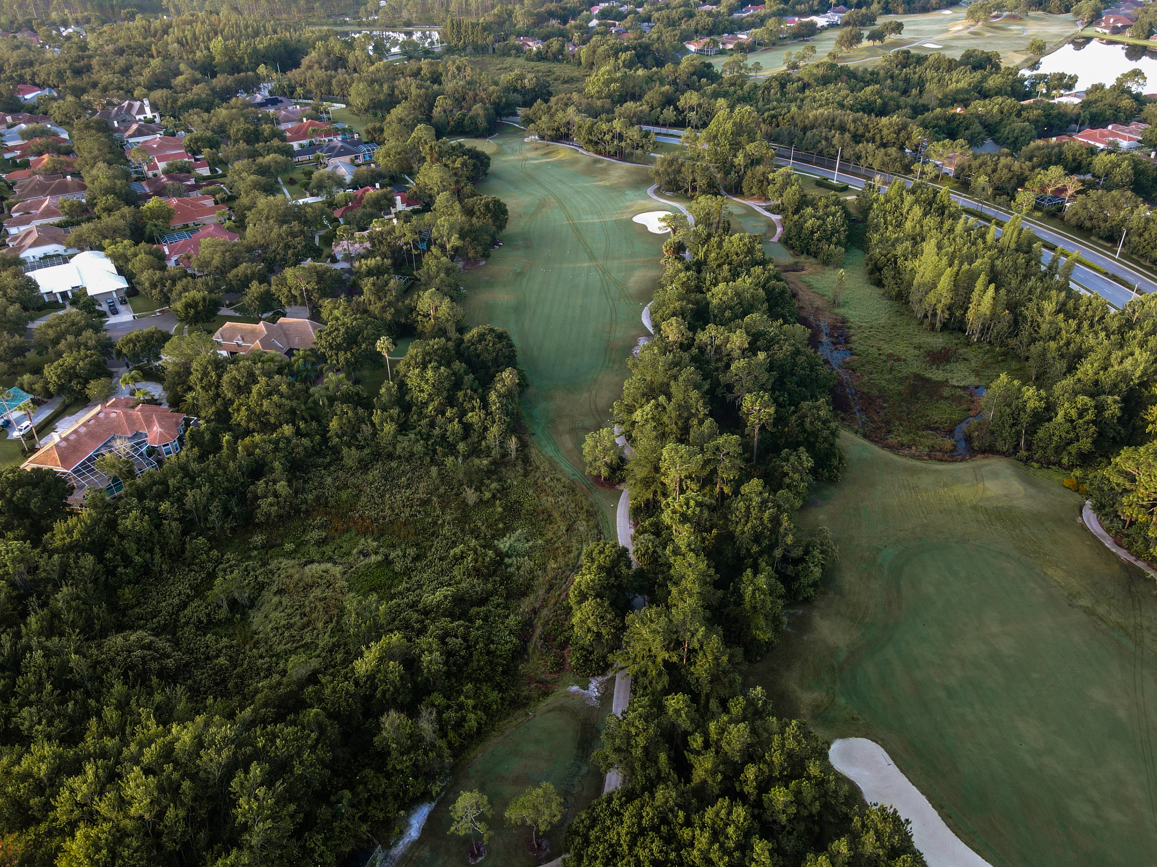 Par 3 tucked between the wetlands and large live oaks that guard the righthand side.