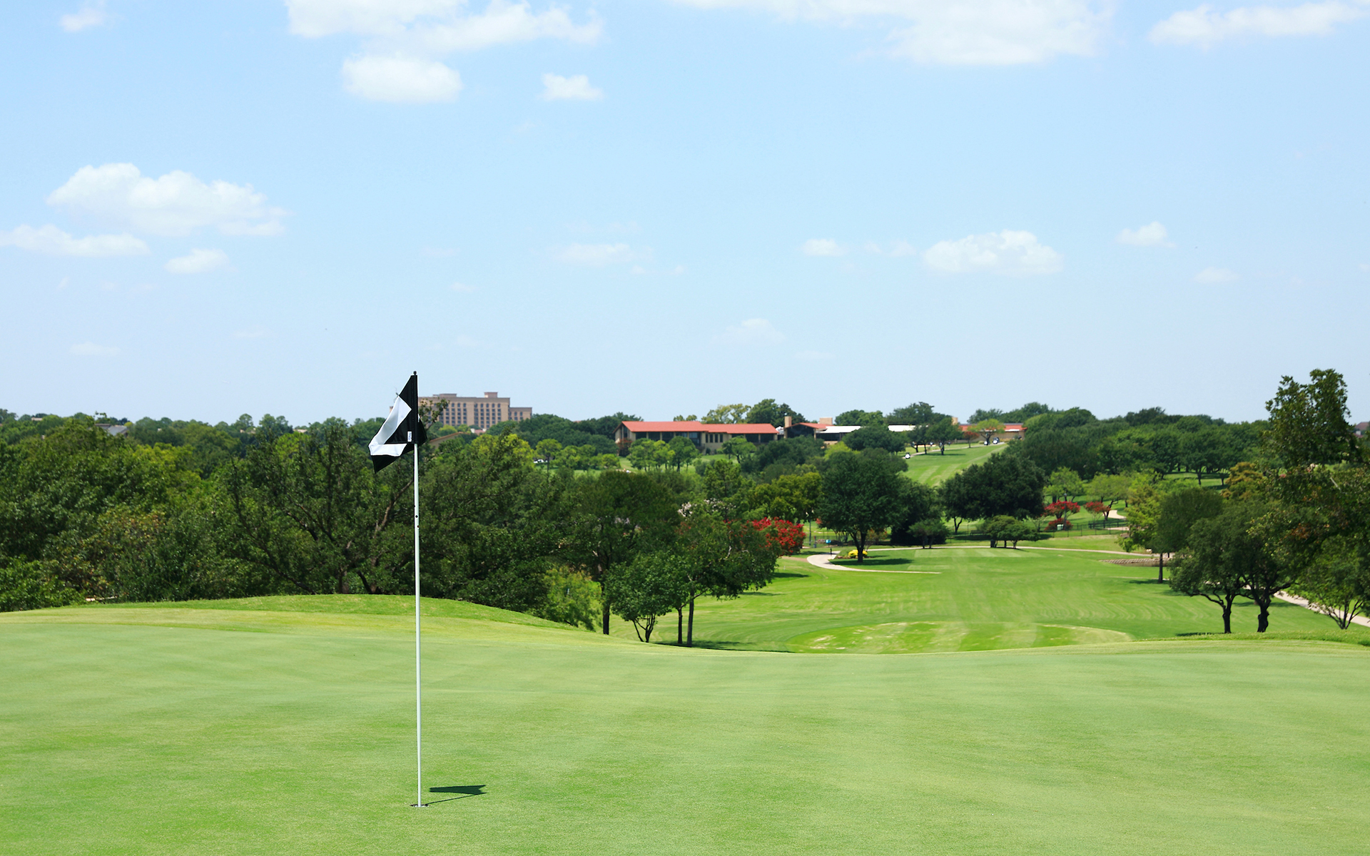 To maintain the top condition of one of the finest golf courses in Las Colinas, golf cart operating is restricted to drivers with a valid driver’s license. All carts are equipped with yardage computers to aid the golfer and monitor play. Press the arrow up or down to get to the correct hole. Exercise caution when driving carts around lakes, creeks and low-hanging mesquite tree limbs. Golf Carts are fairway driving only. Carts must enter at the first post, stay in the fairway and not the rough until returning to the path at the second post next to the green.
