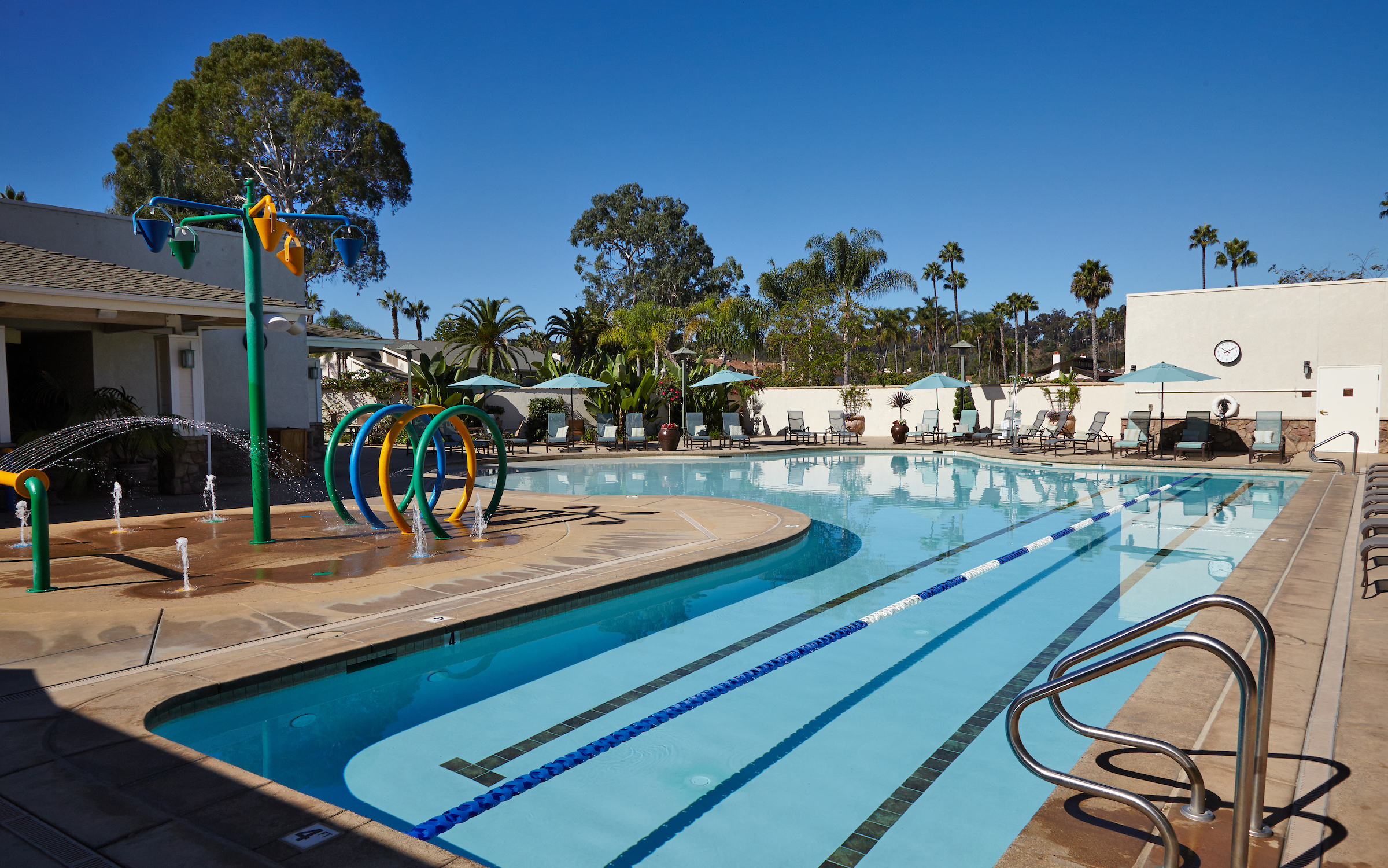 Our leisure pool includes a splash pad for kids, lap lanes, and a hot tub; the pool is always kept at a comfortable temperature so Members can enjoy it year-round.