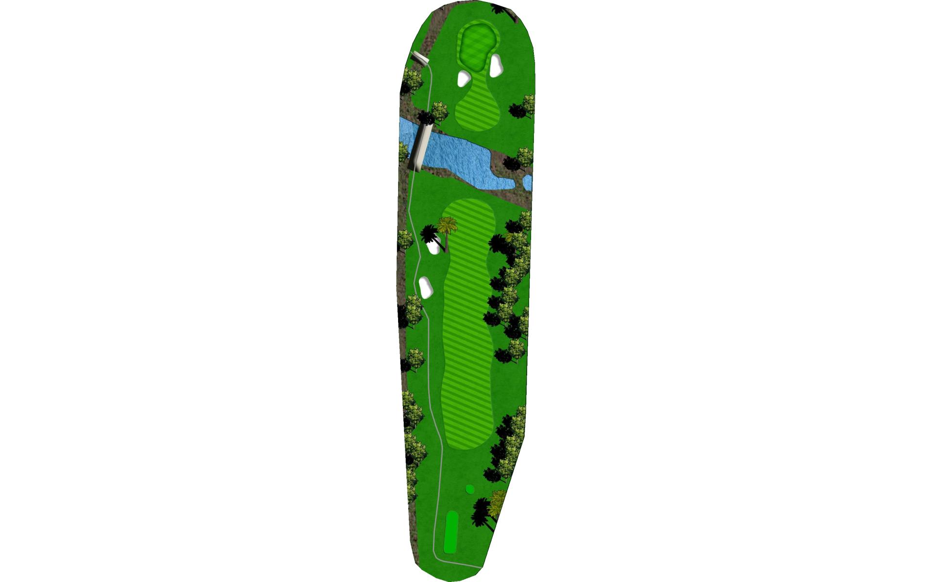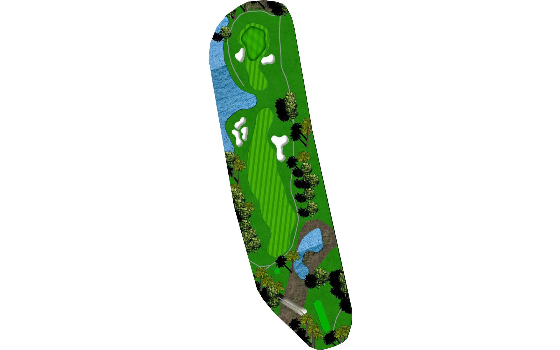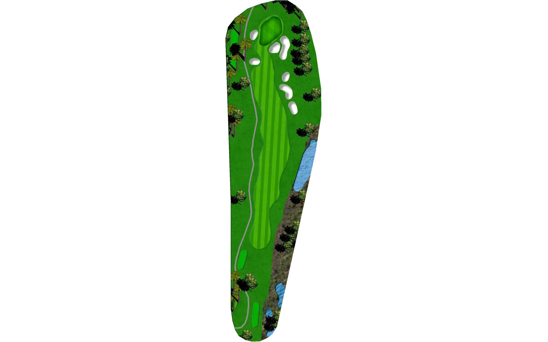 | Risk/reward hole. If you hit a good drive you can play your second shot over the water. It will play into the prevailing wind. |