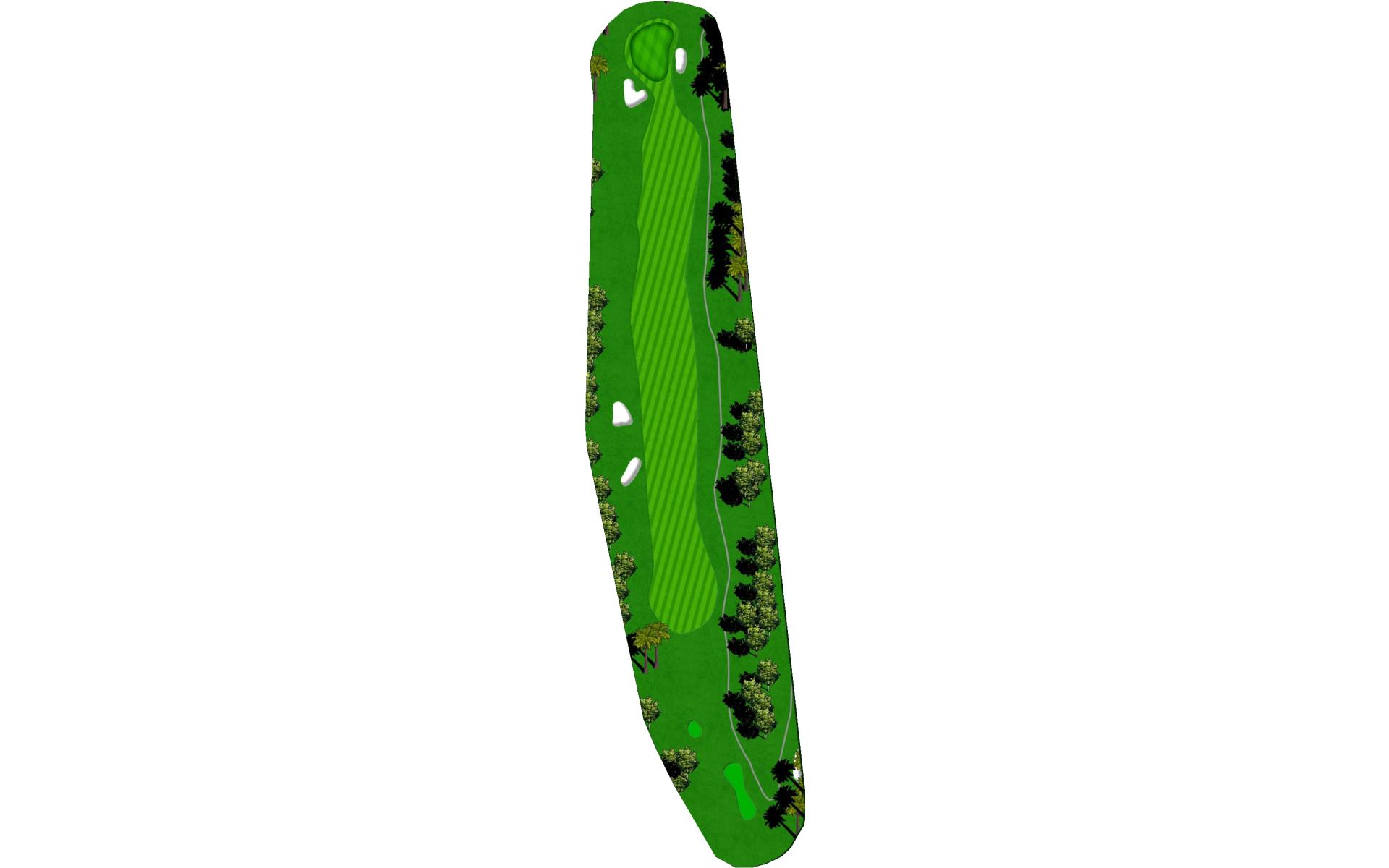 | On your tee shot avoid the creek on the right and take one to two extra clubs on approach shot with the prevailing wind in your face. |