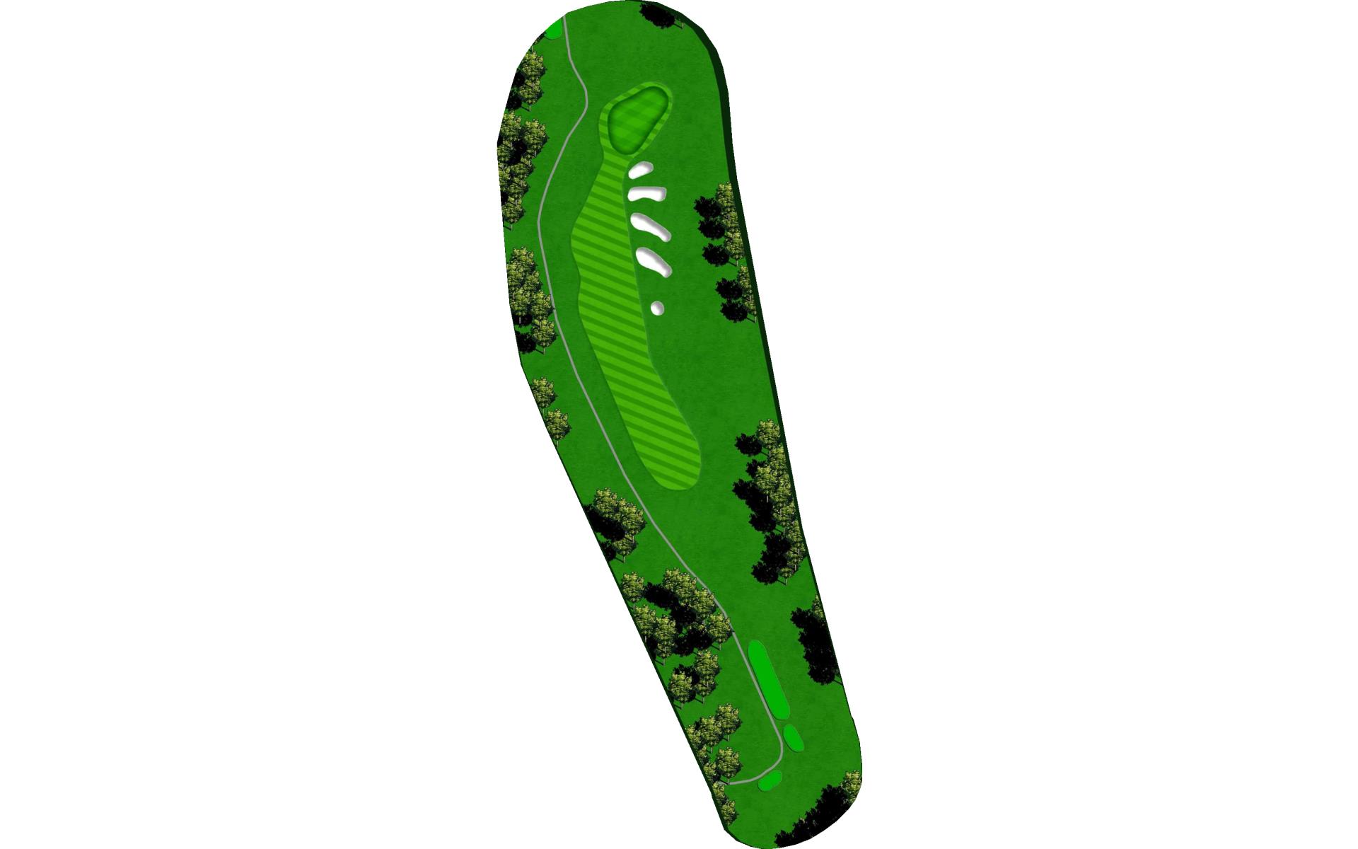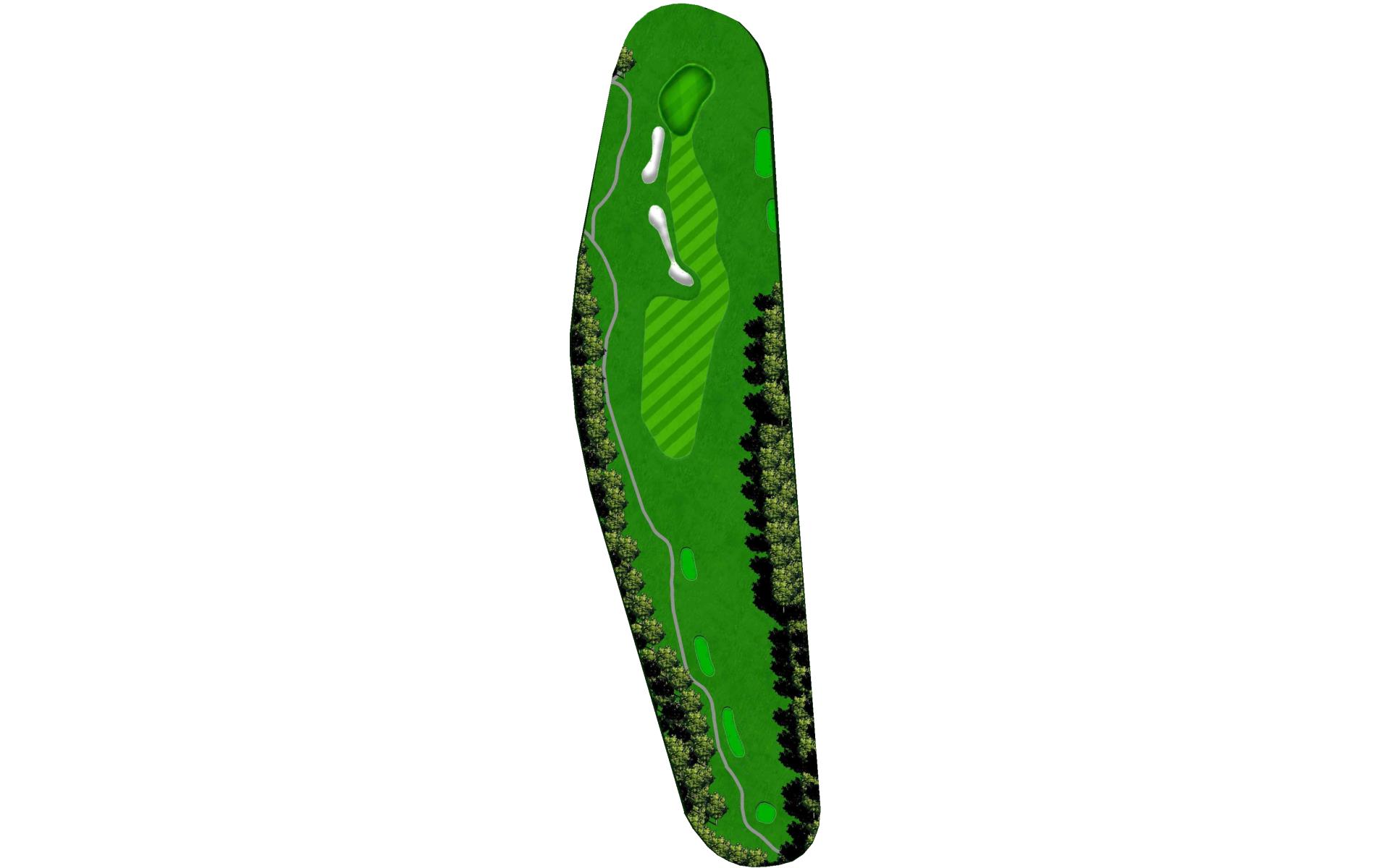 Second and final par 5 on the course. Large landing area but it is a must you avoid long fairway bunkers on the left. Solid tee ball leaves the choice to layup or go for it. Green protected by 50yds of bunkers on the right with greenside bunker and native grass left. Front pin location is green light.