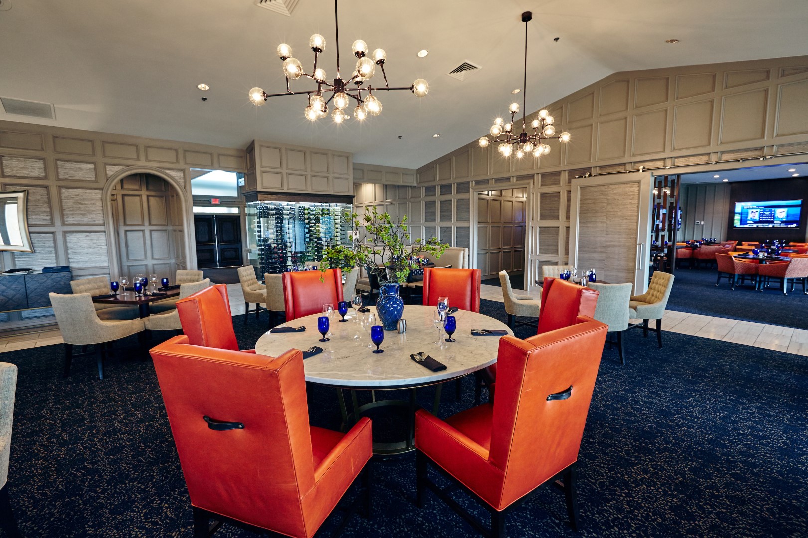 The Tack Room offers casual and fine dining with a vaulted ceiling and large windows for natural light and great views of the course. Members and their families enjoy the camaraderie of their peers in a stylish, yet comfortable, atmosphere noted for exceptional dining, high-quality choices, and personalized service.