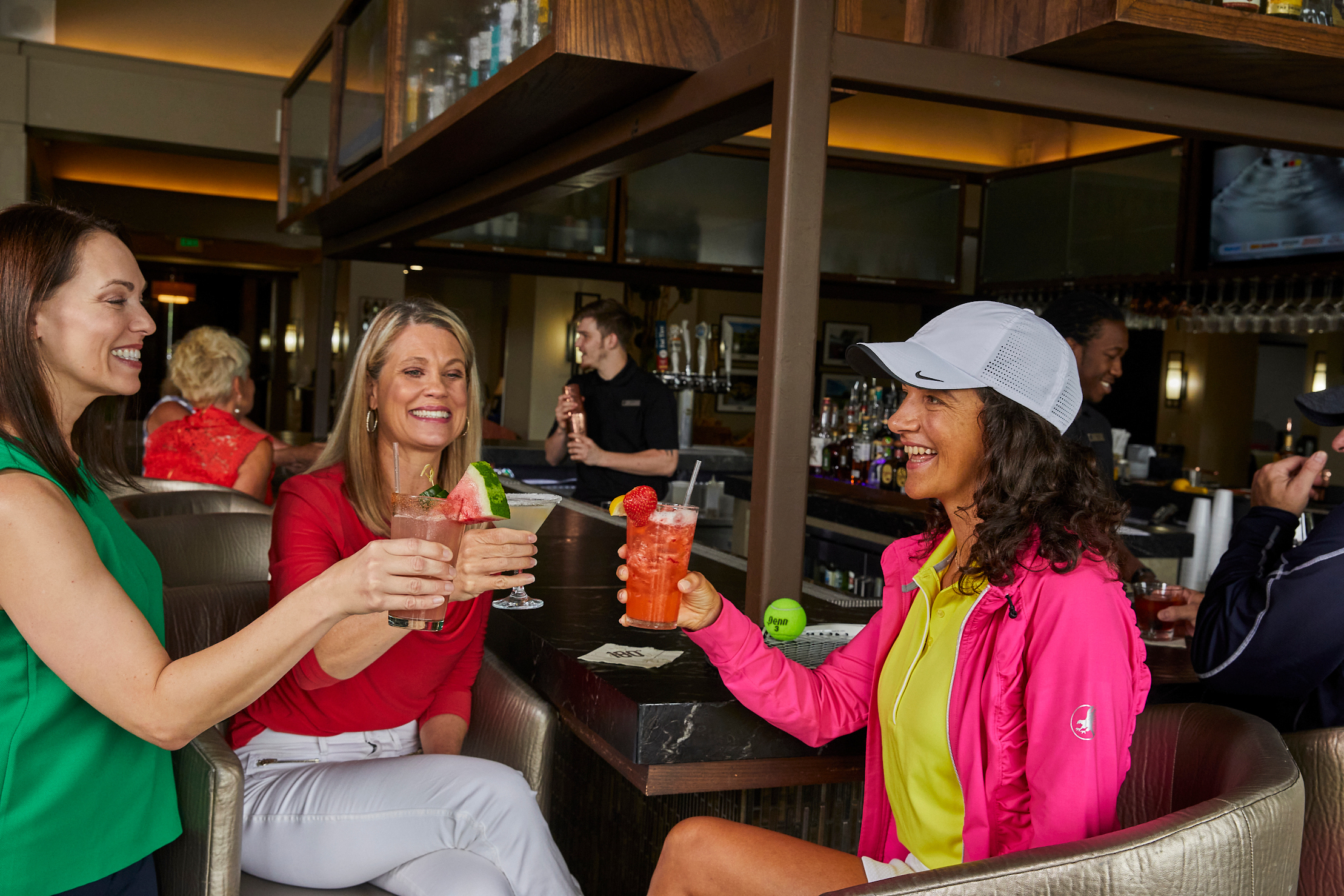 Enjoy the views looking out on to the course in our modern take on country club classic dining with newly reinvented menus. Relax in casual comfort in our elegant setting with flexible seating. Wireless access and plenty of places to work make it the perfect spot for power lunches. The family-friendly atmosphere also makes it a great place to grab a bite with the whole crew or celebrate date night with Friday Night Out.
