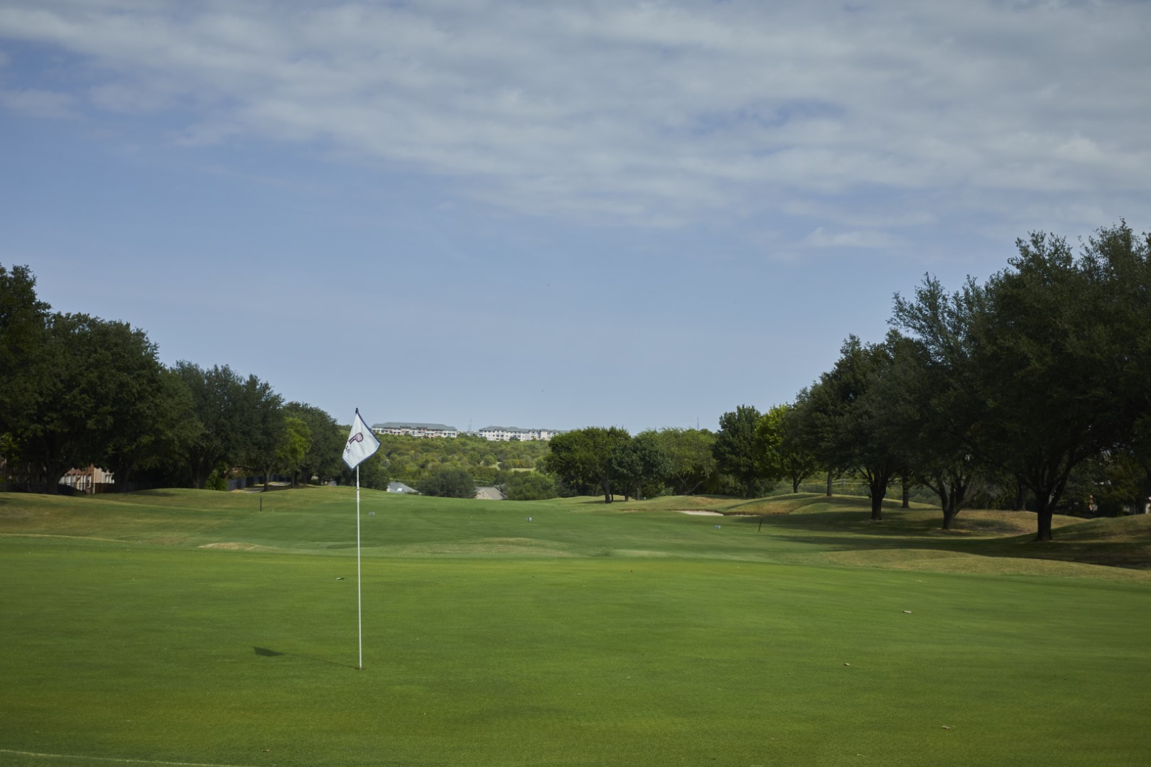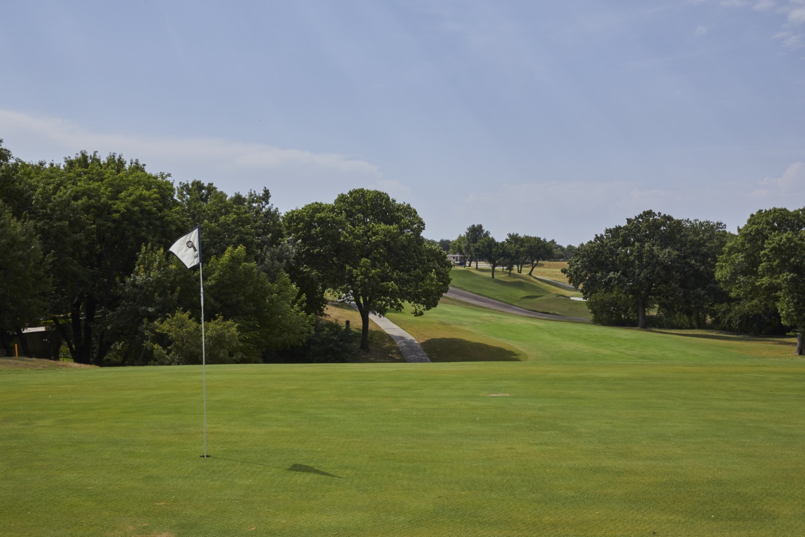 Another Par 4 that plays uphill, with Out of Bounds and large hills on both sides of the fairway, most tee shots should find the short grass. Take a little extra club for your approach, as the surface of this green is not visible due to the elevation change.