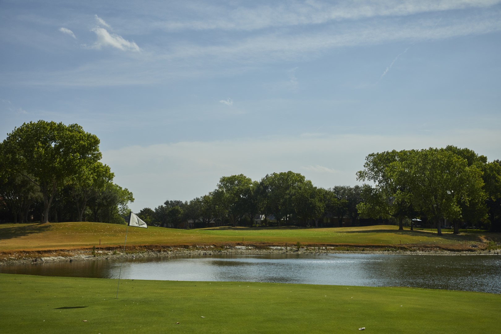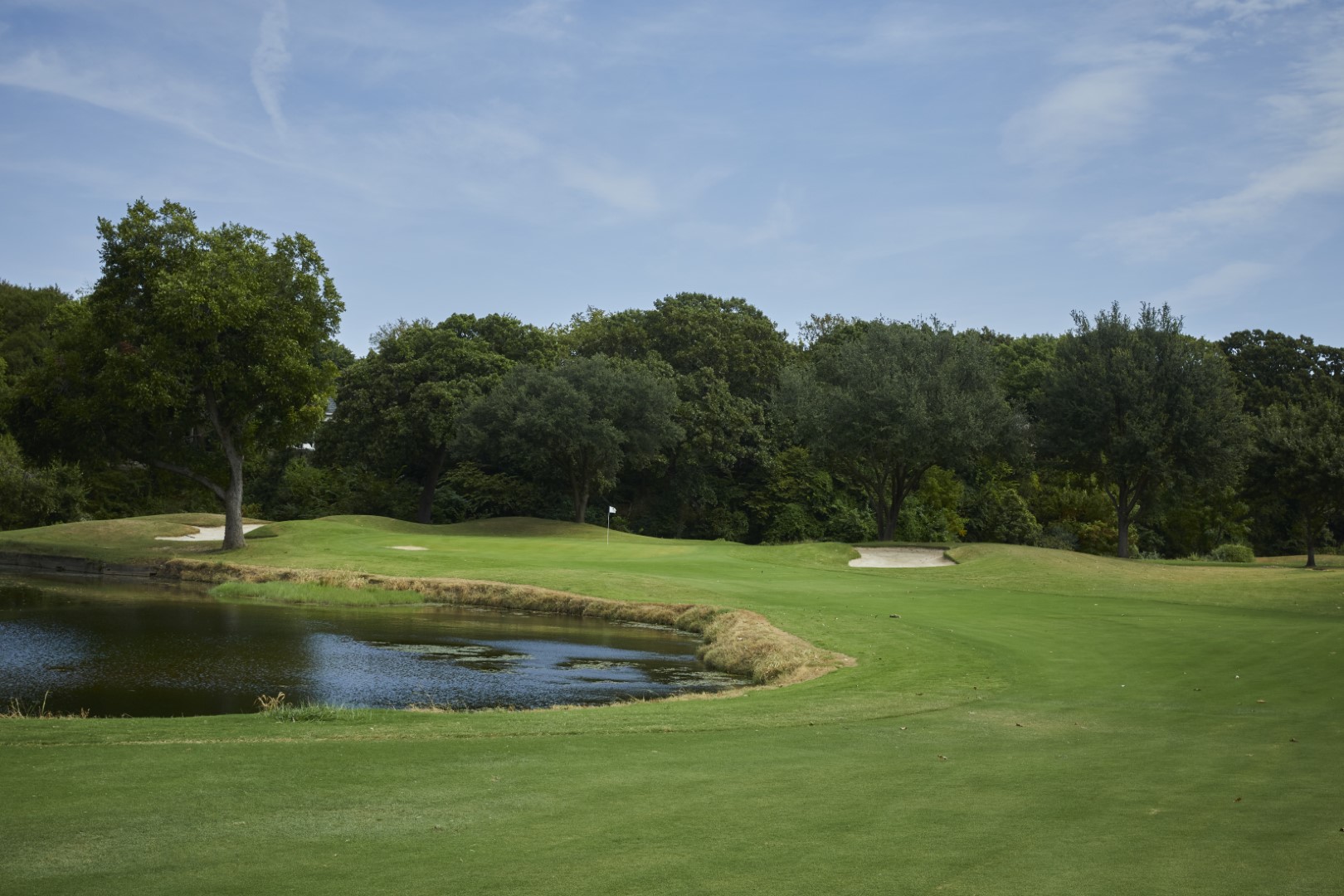 Another signature Par 4, this tee shot requires a slight left to right ball flight to maximize the potential of landing in the fairway. Another delicate approach shot to an undulating green requires enough distance to carry the water short and left of the green.