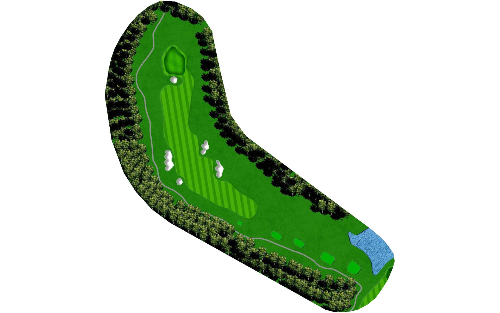 A straight away par 4 with a wetland area 250 yards off the tee requiring long hitters to lay-up off the tee. A large lake on the entire right side of this hole comes into play. A large green with many challenging hole locations.