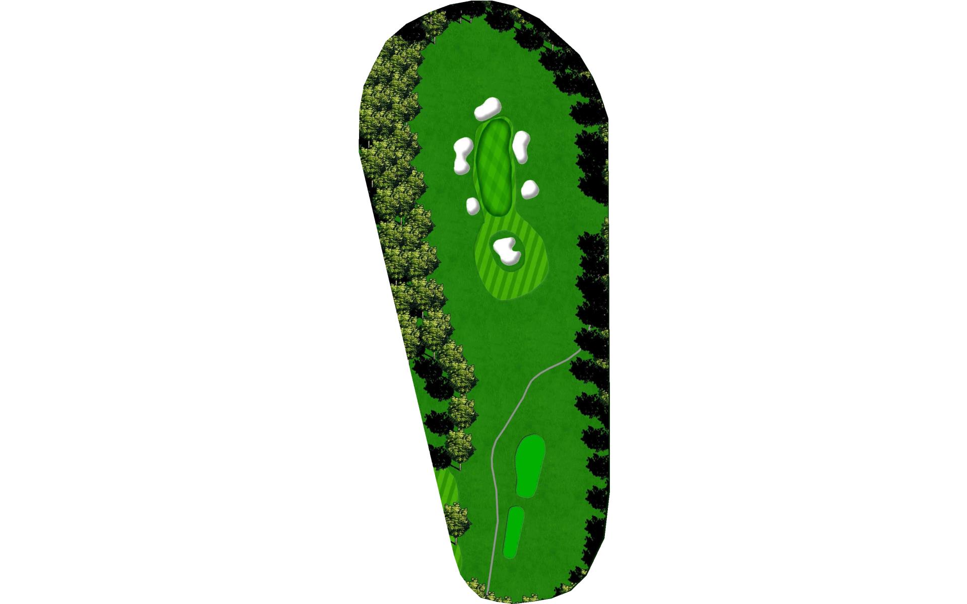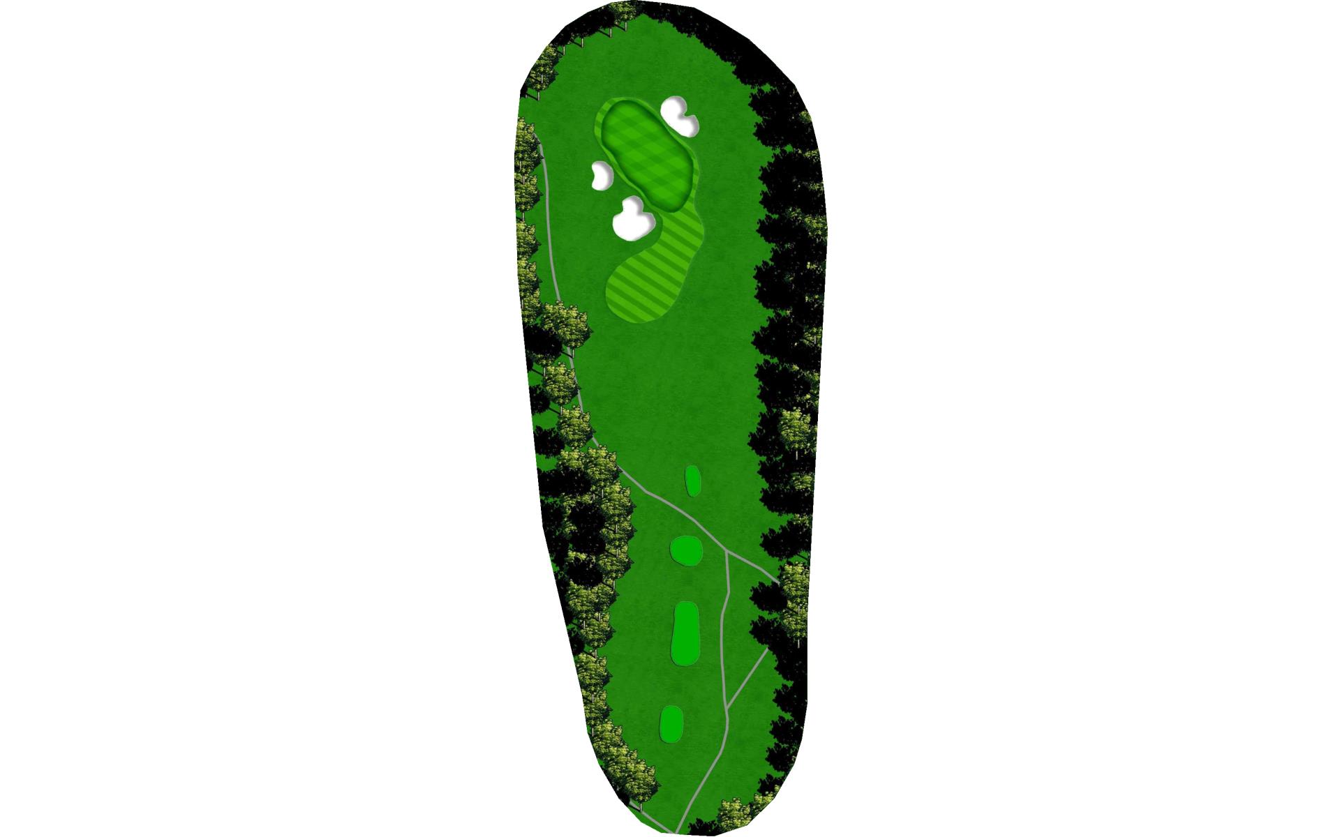 A medium length par 3 with another large green with a variety of difficult pin locations. Favor the left side and avoid the deep bunker on the right.