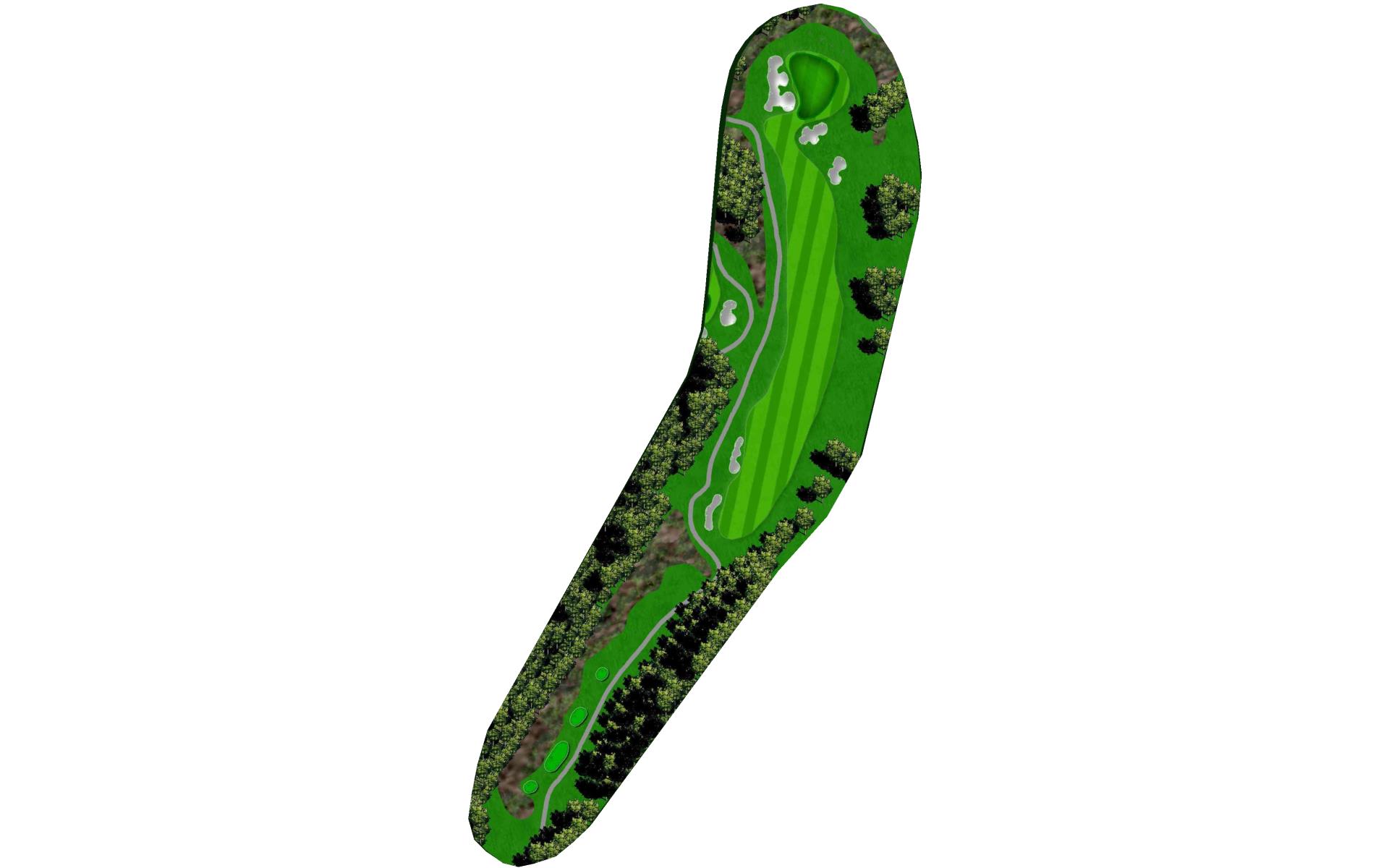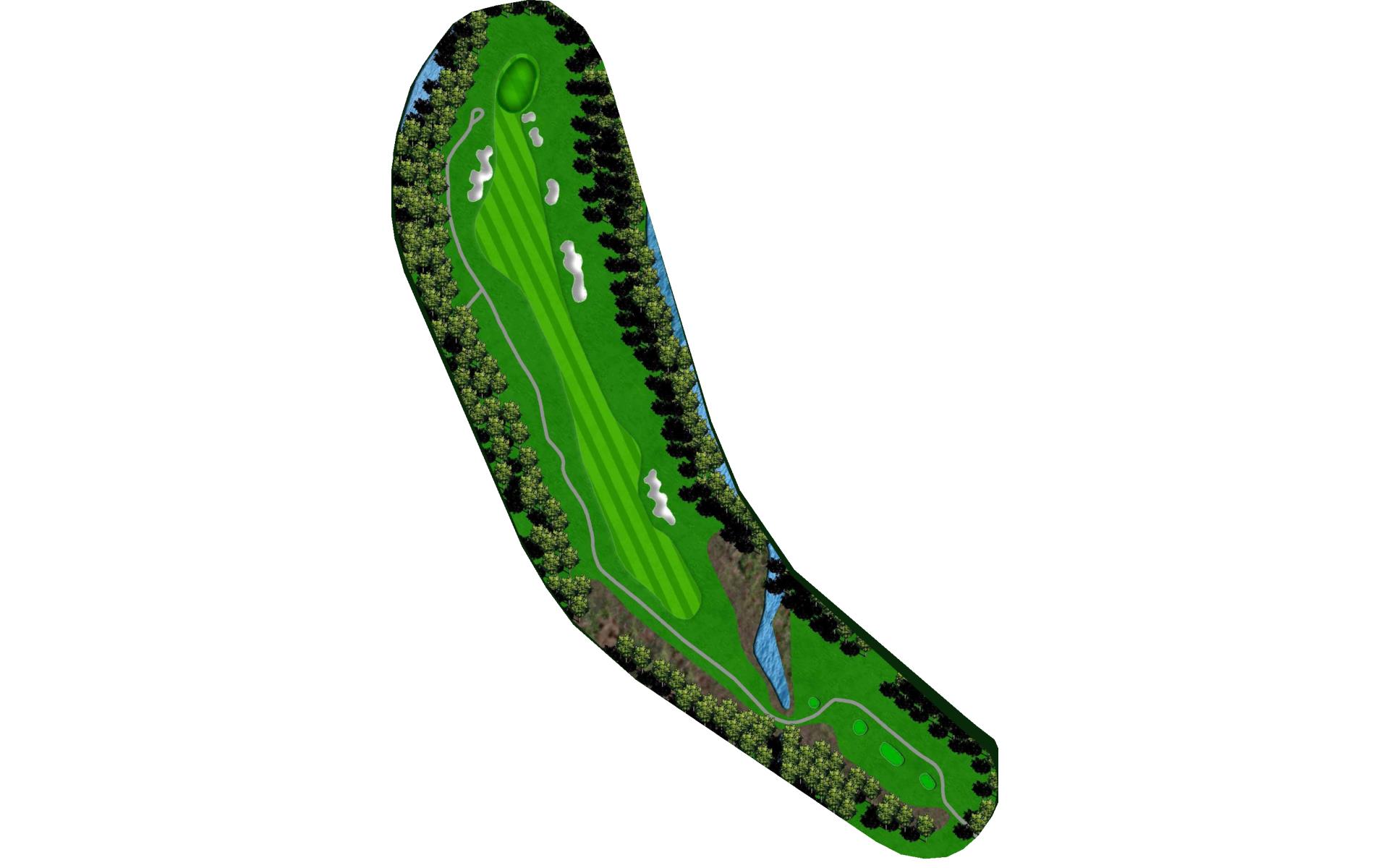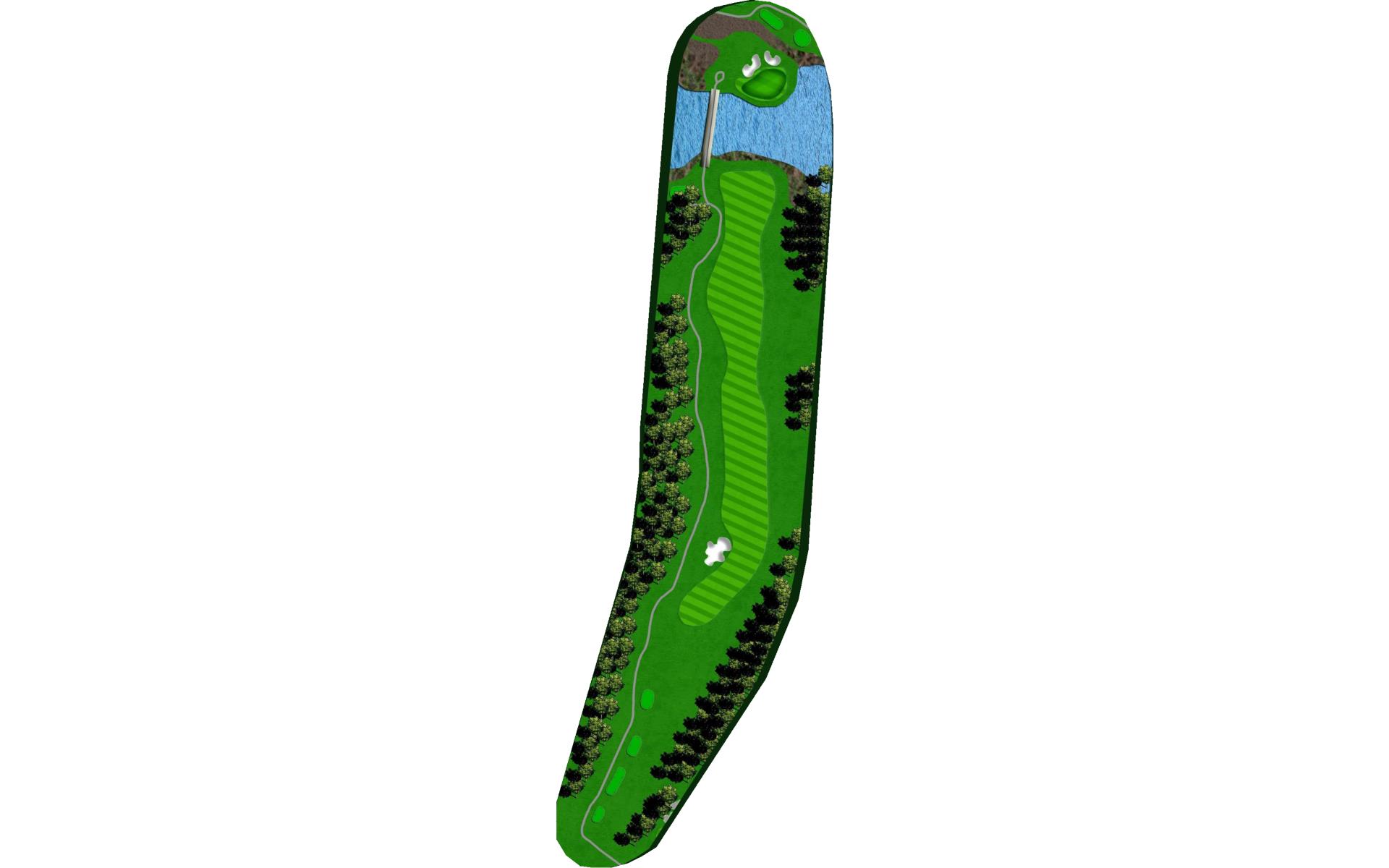 Rated as the hardest hole on the course, this Par 5 should be played as a 3-shot hole. The fairway slopes from left to right that runs towards a string of fairway bunkers and penalty areas. A mid-iron layup shot leaves a wedge into a bottle necked green.