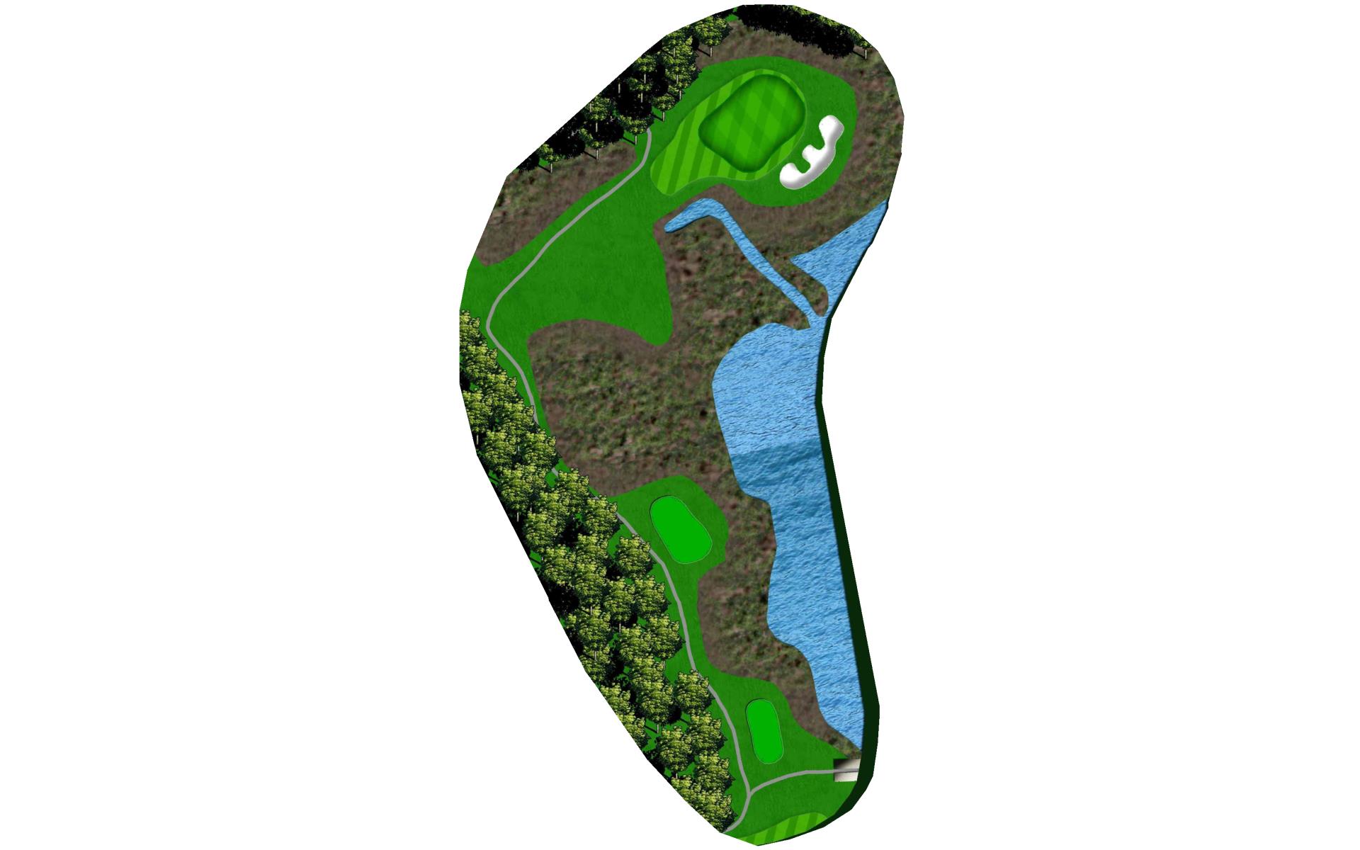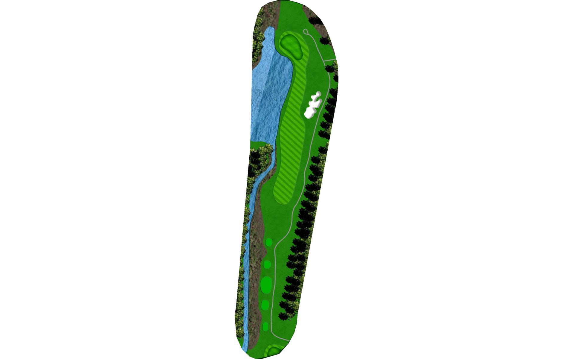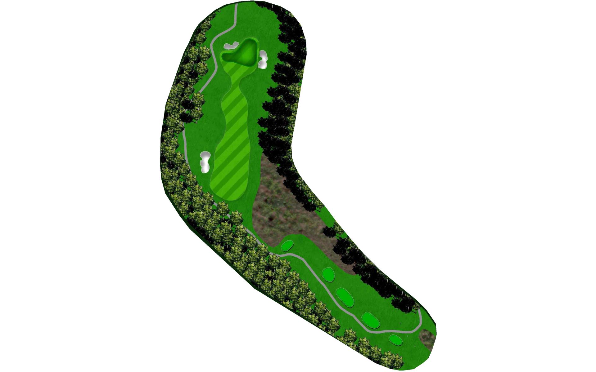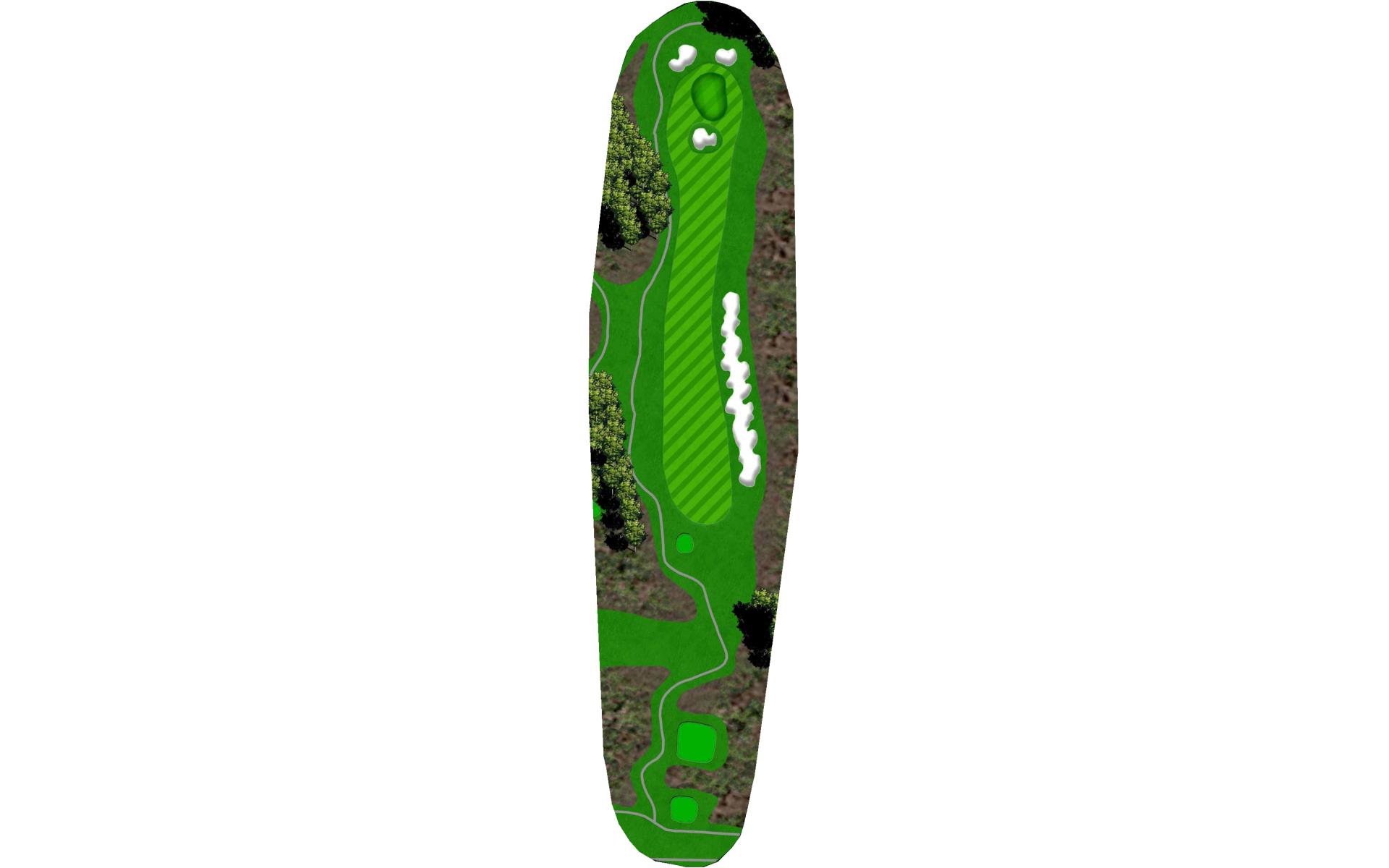 Rated as the hardest hole on the course, this Par 5 should be played as a 3-shot hole. The fairway slopes from left to right that runs towards a string of fairway bunkers and penalty areas. A mid-iron layup shot leaves a wedge into a bottle necked green.