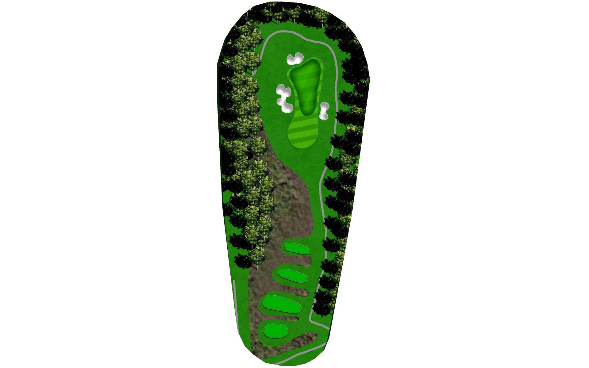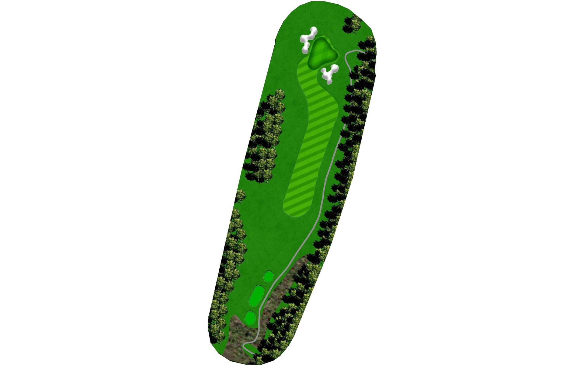 Getting off the tee here is the main objective. Driver is not the club of choice here as the fairways is protected on both sides by woods. The second shot plays about club more up the hill to a green pitched front to back.