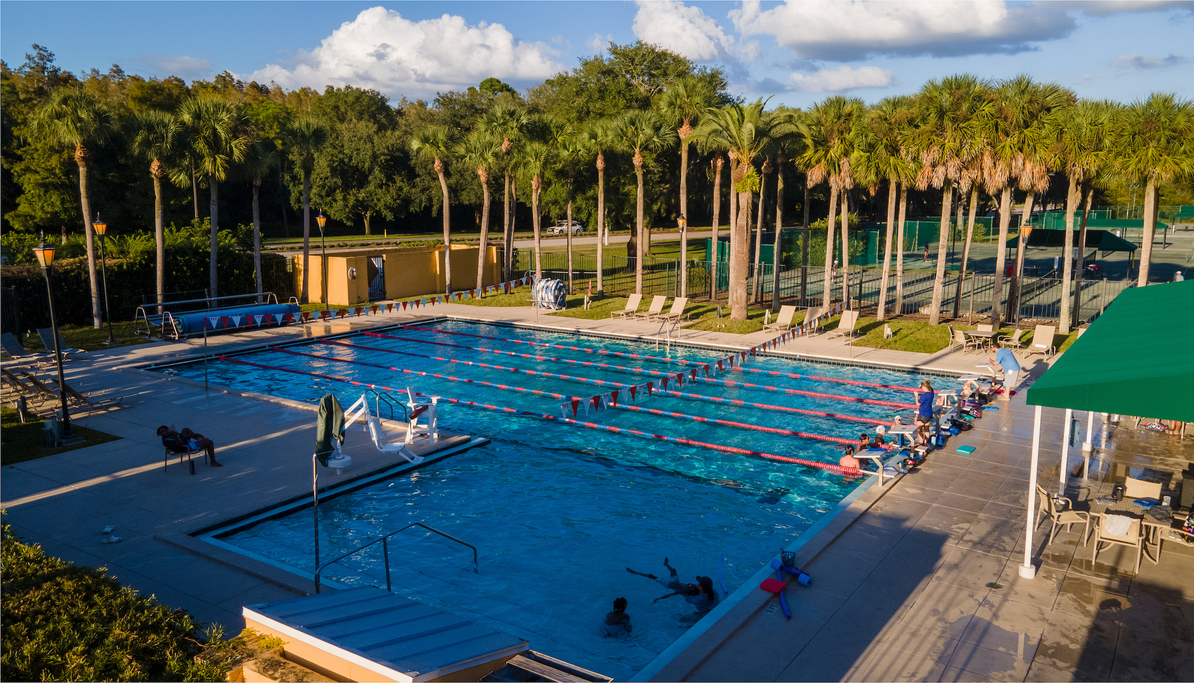 The tennis complex at Tampa Palms features 11 Har Tru courts surrounded by lush palms and native Florida landscaping, creating a vibrant setting for play. With year-round leagues, professional instruction, and a lively social calendar, it’s a premier destination for both competitive and casual players alike.