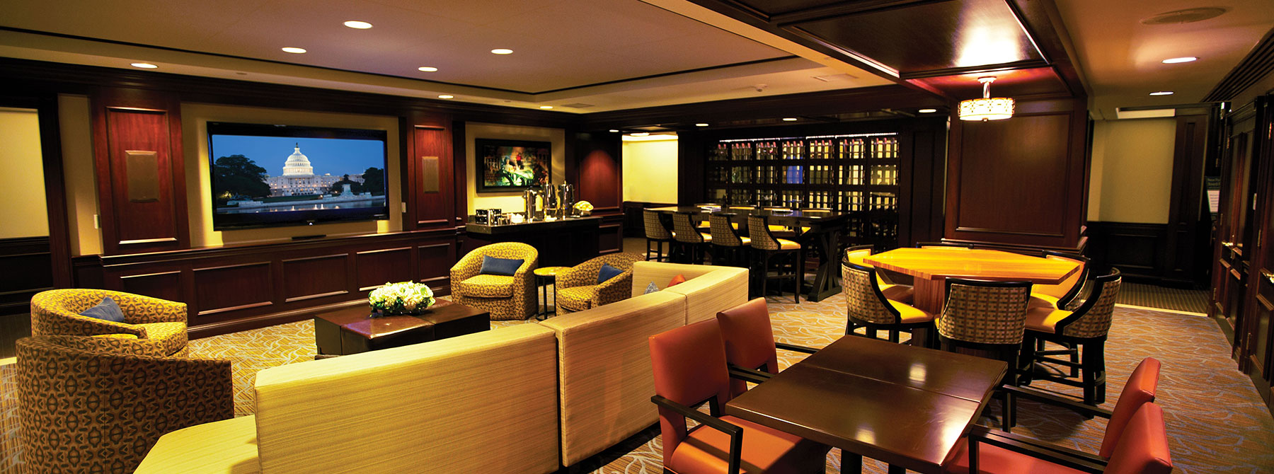 While traditional business attire is always appropriate, business casual is also welcome at the City Club of Washington. Denim or “nice” jeans are permitted at breakfast, lunch, and in the Columbia Lounge area. The denim may not be faded or torn. The Member host of a private event determines the appropriate attire for the event within the Club’s guidelines. A collared, or banded-neck dress shirt, or sweater must be worn with denim. No T-shirts, tank tops, tank-style undershirts or halter-tops are allowed, regardless of logo or imprint.