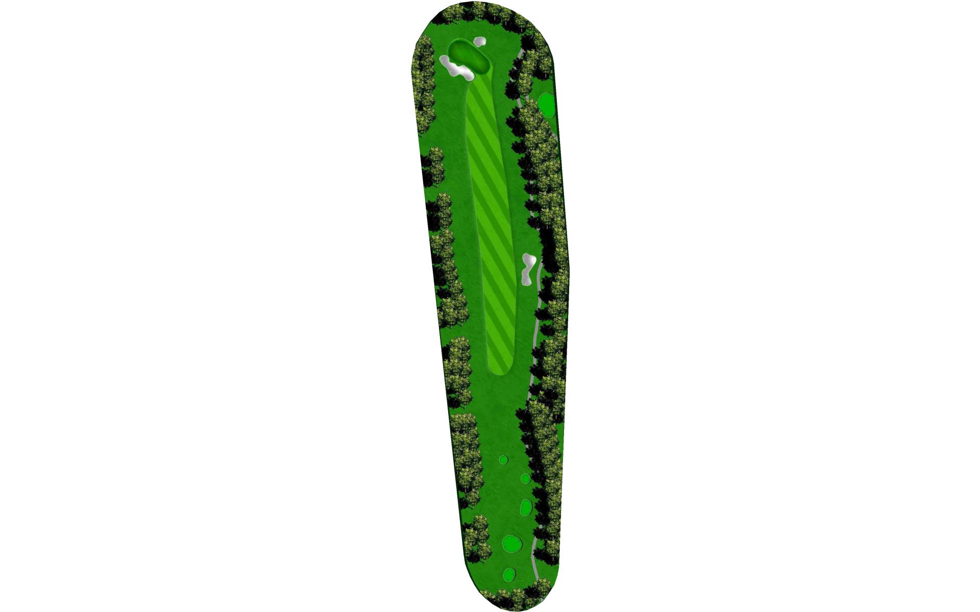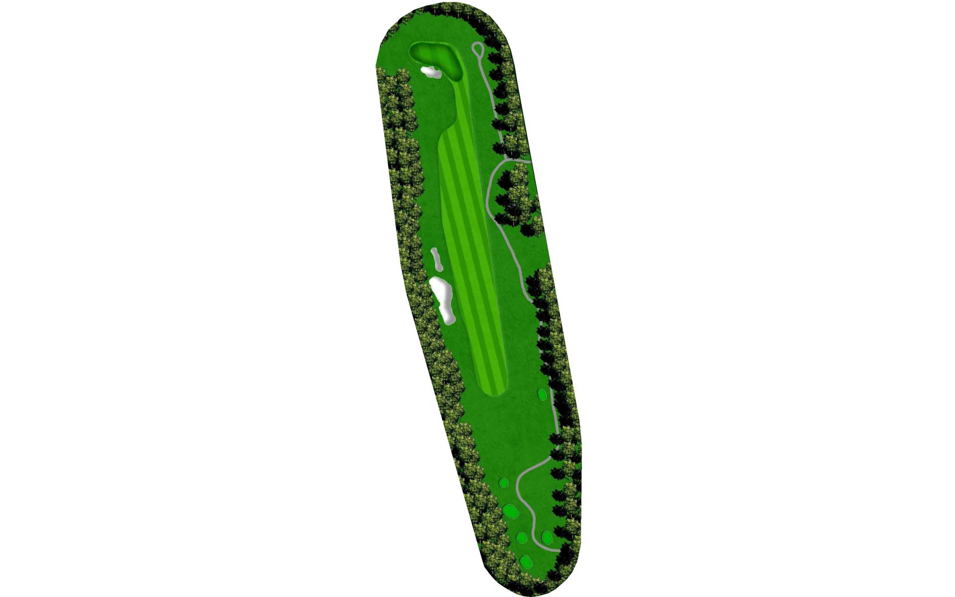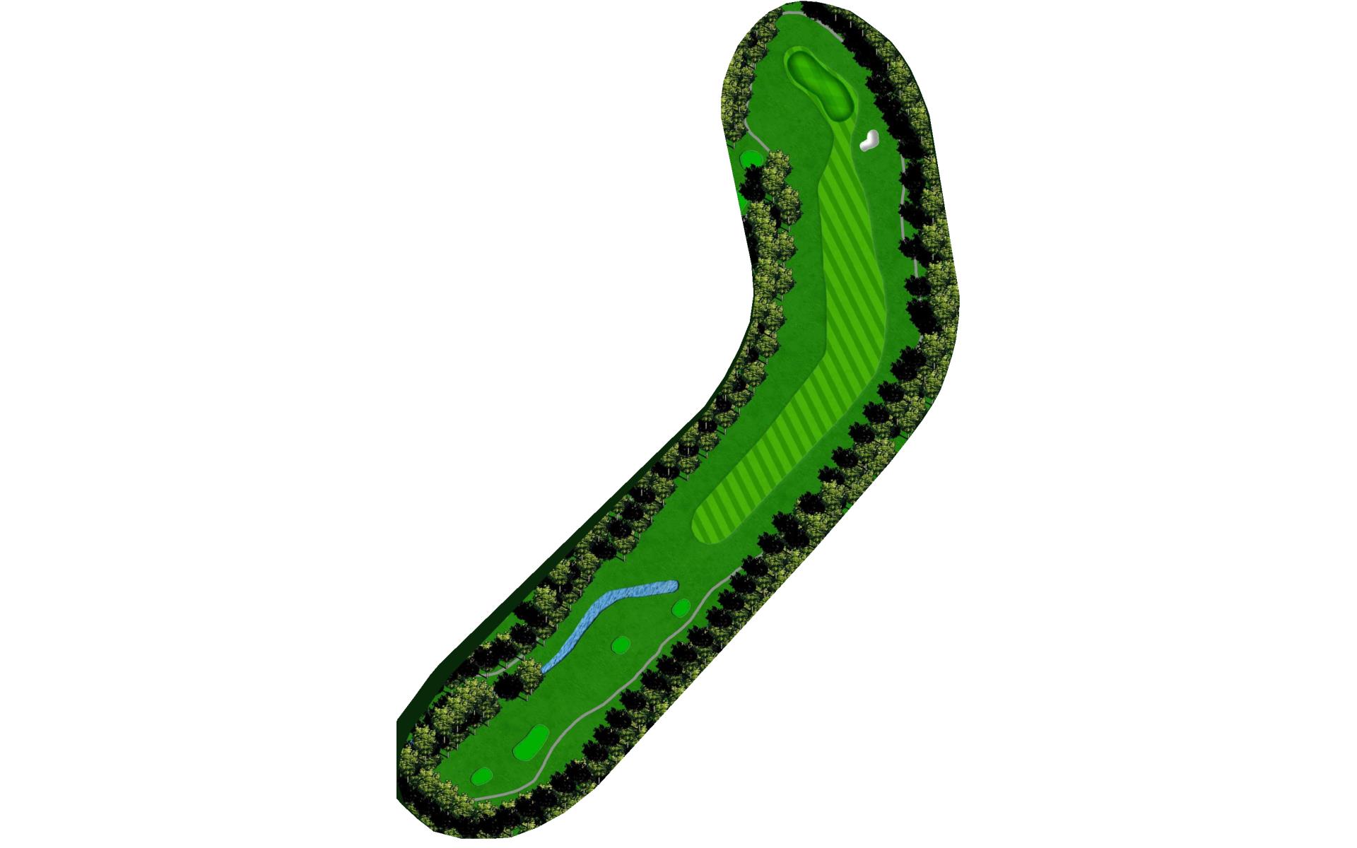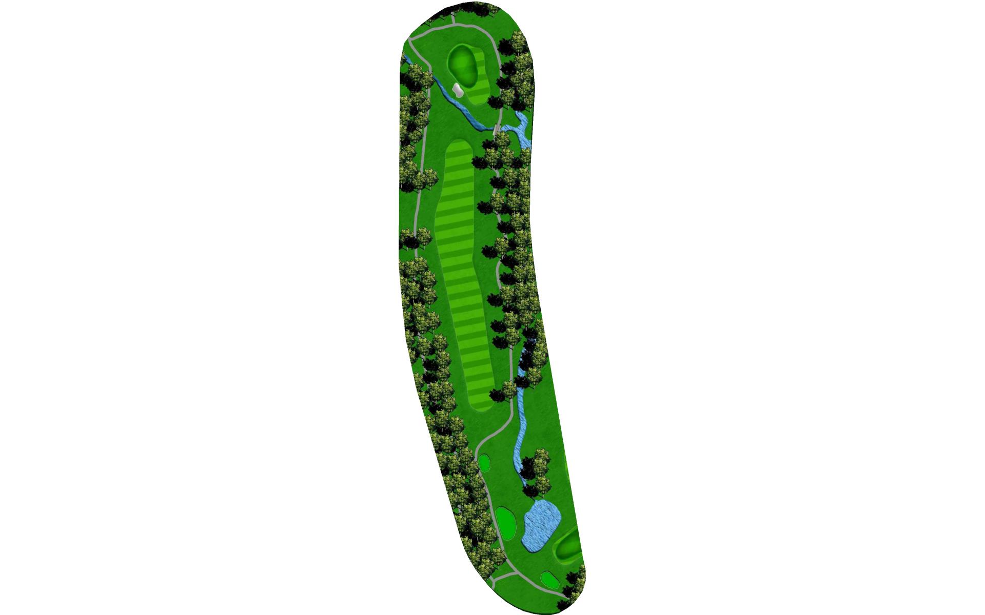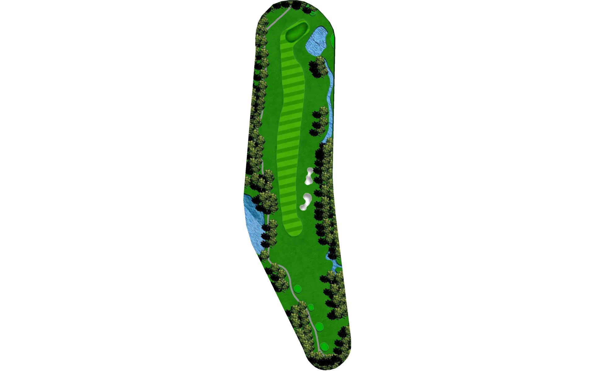 The course opens with a relatively straight par 4 with a fairway that slopes left-to-right. The approach shot will have to navigate a creek that runs across the front of the green and a bunker short left. This green slopes back-to-front.