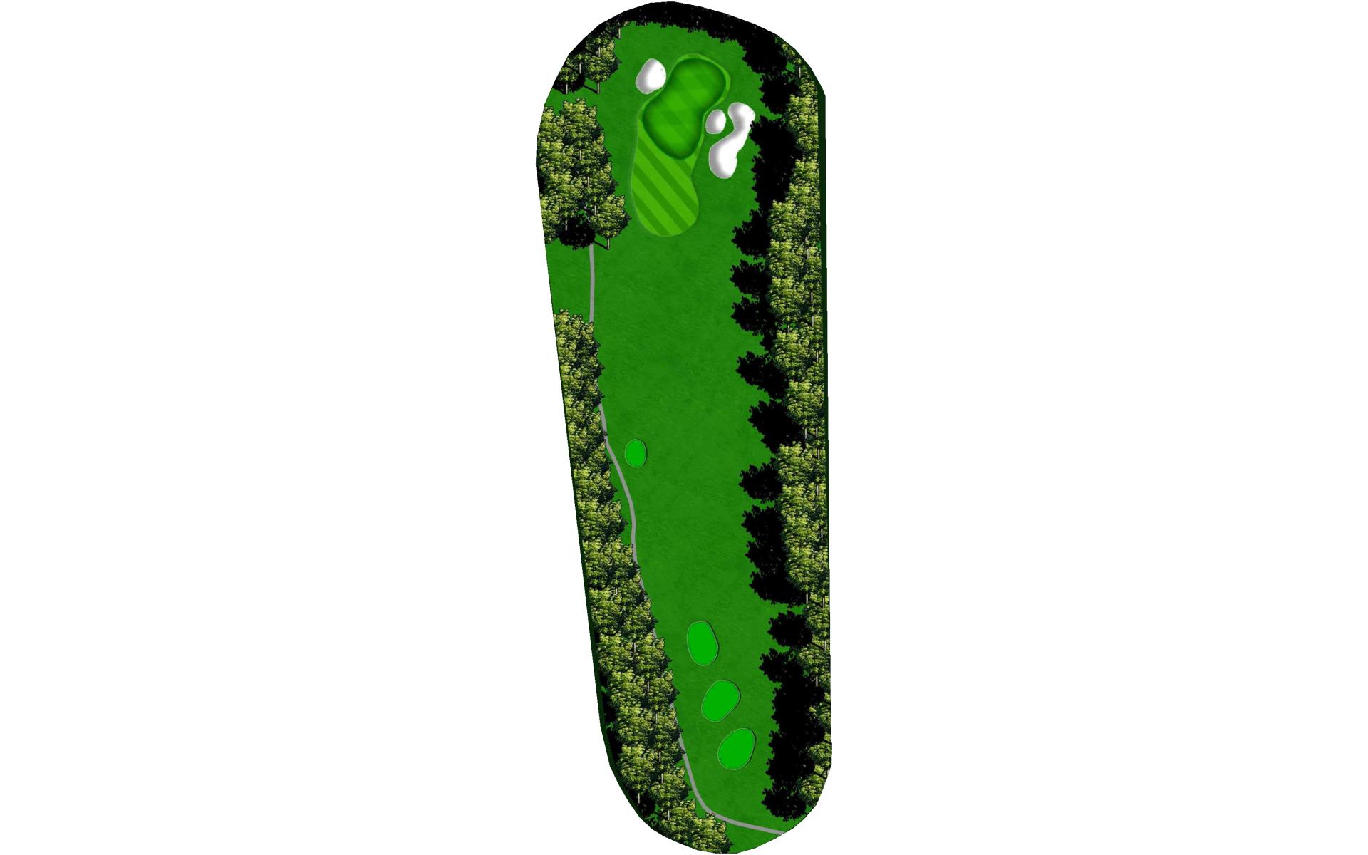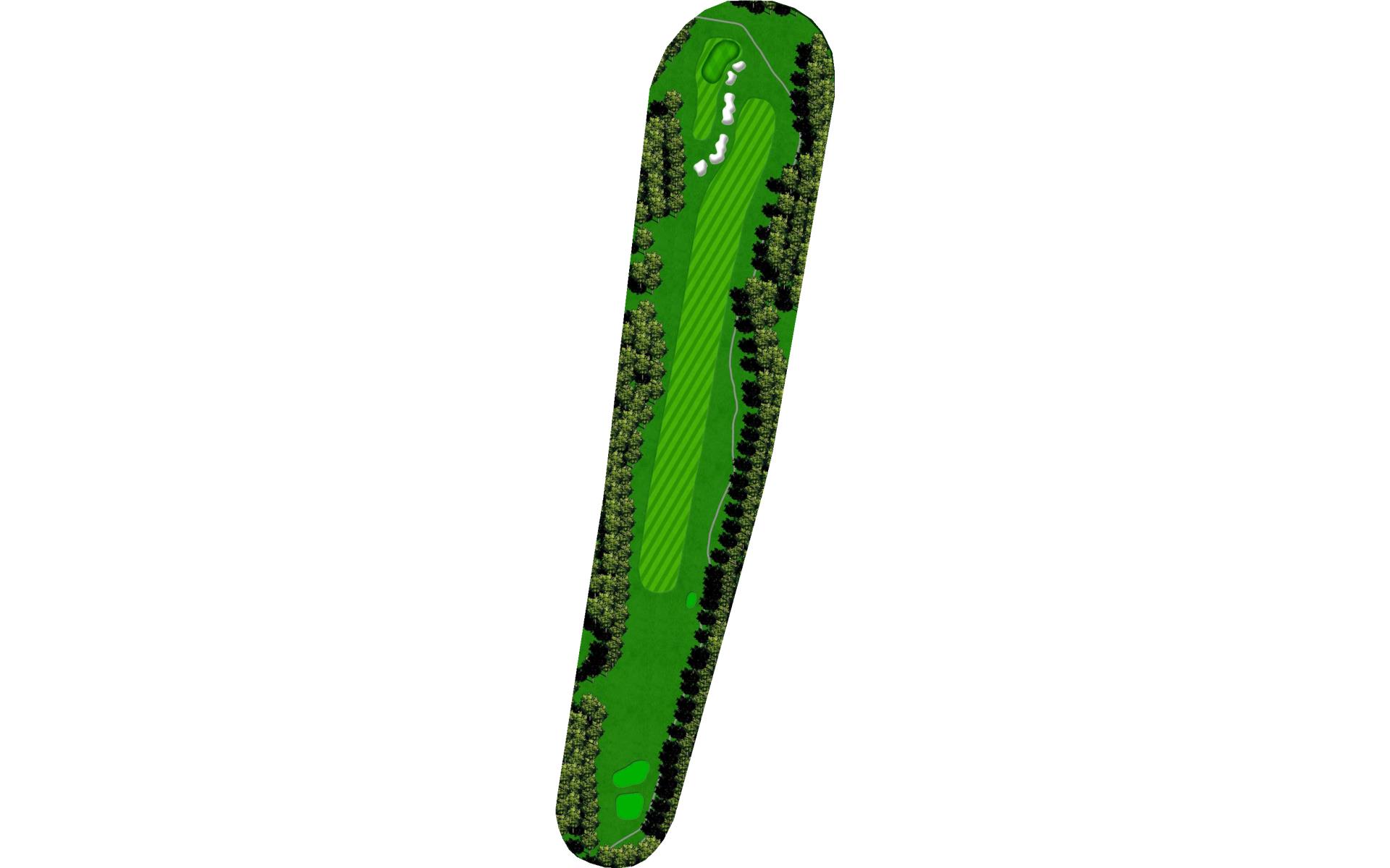 The ideal tee shot on this dogleg par 4 is right-center of the fairway, which will provide the best angle into the green. The putting surface is protected by multiple grass bunkers and swales and slopes both back-to-front and right-to-left.