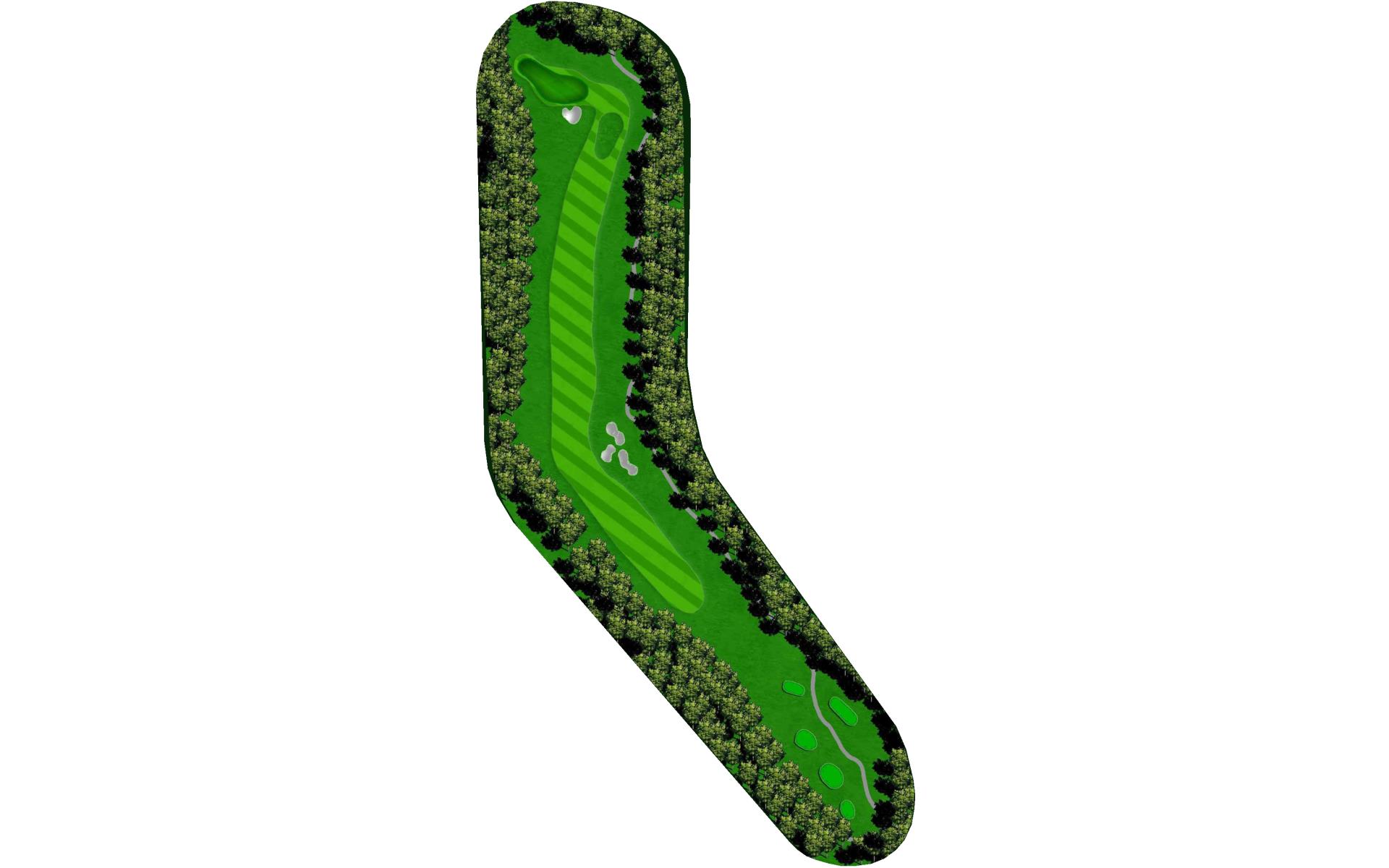 The third hole is a dogleg par 5 with a fairway that slopes right-to-left off the tee. The approach will require players to avoid an extensive series of deep bunkers.
