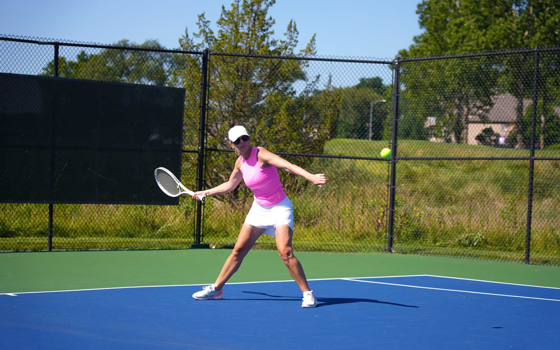 Our 4-court tennis facility is home to competitive and social play for juniors, ladies, men and couples. Private and group lessons are available for everyone from experts to beginners. Is it coincidence that our club colors are similar to Wimbledon’s?