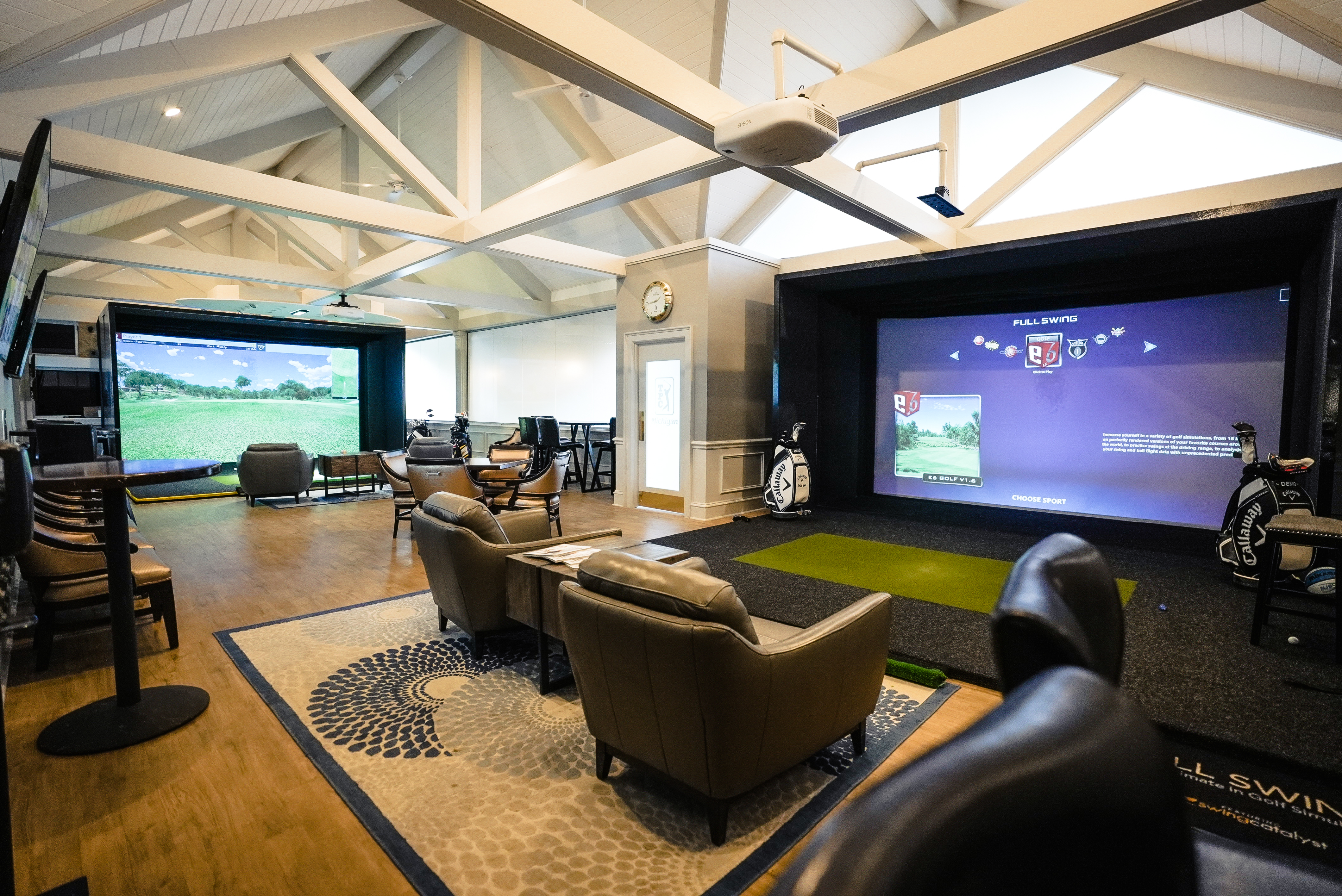 Open year round for your entertainment, the Golden Bear Lounge at TPC Michigan is an innovative golf-simulator experience, offering fun for all ages and golf abilities. Enjoy our Club cuisine and cocktails while you take on friends, family or associates in a friendly game of virtual golf. It's also the perfect place to host parties, events and more!