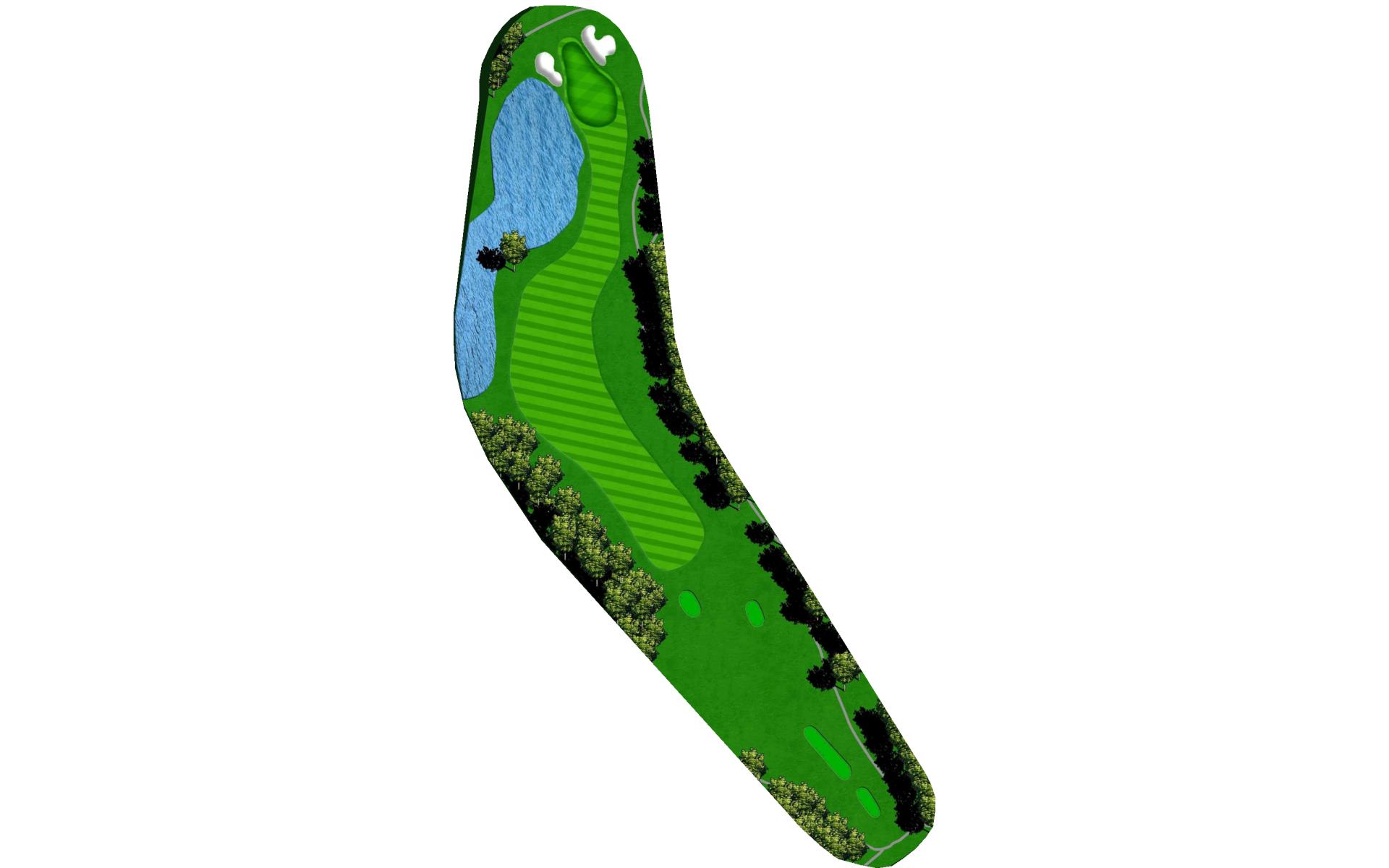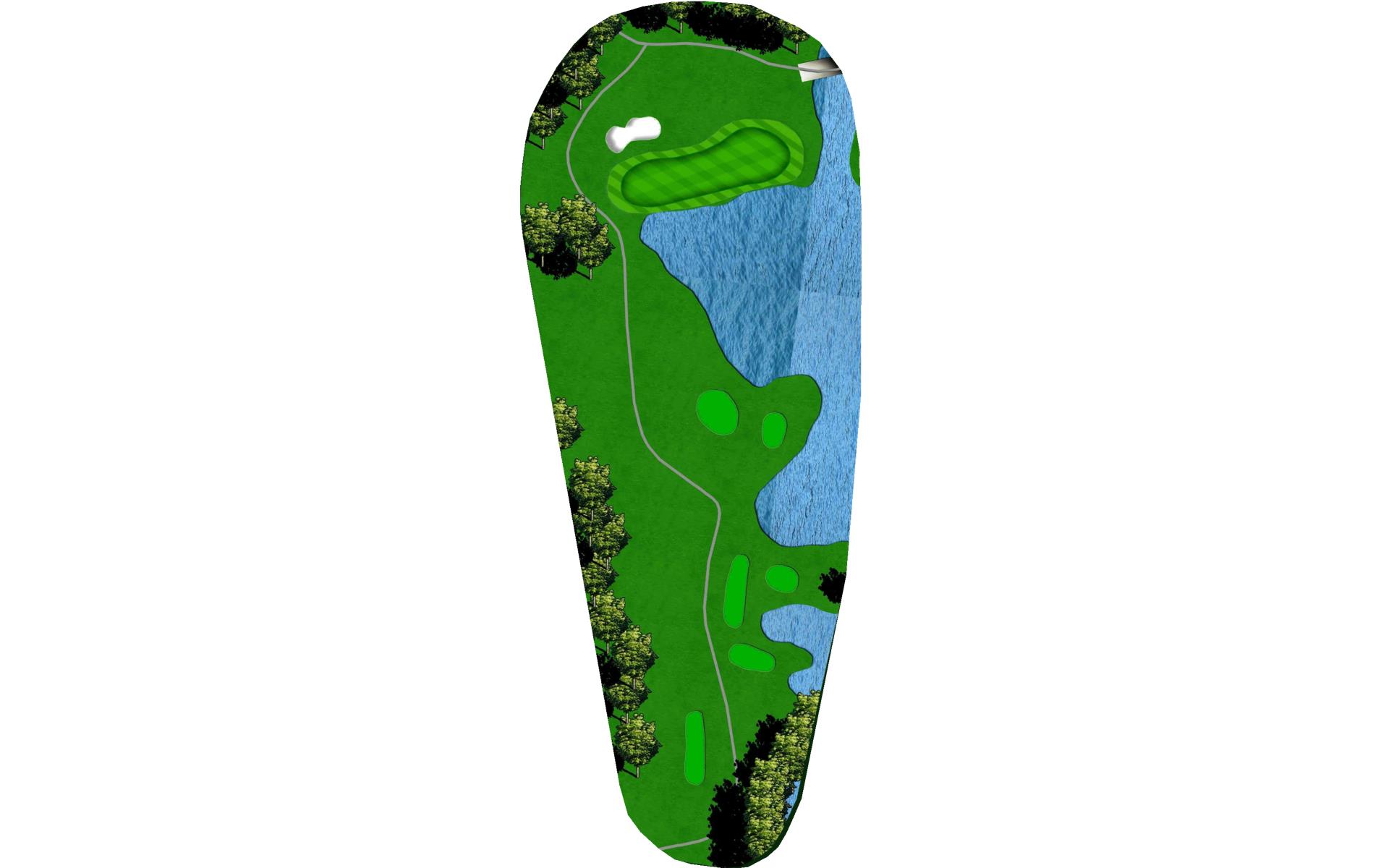 | What a way to start the round! Keep the driver in the bag and favor the left side of the fairway to leave yourself a slightly less difficult approach over water. |