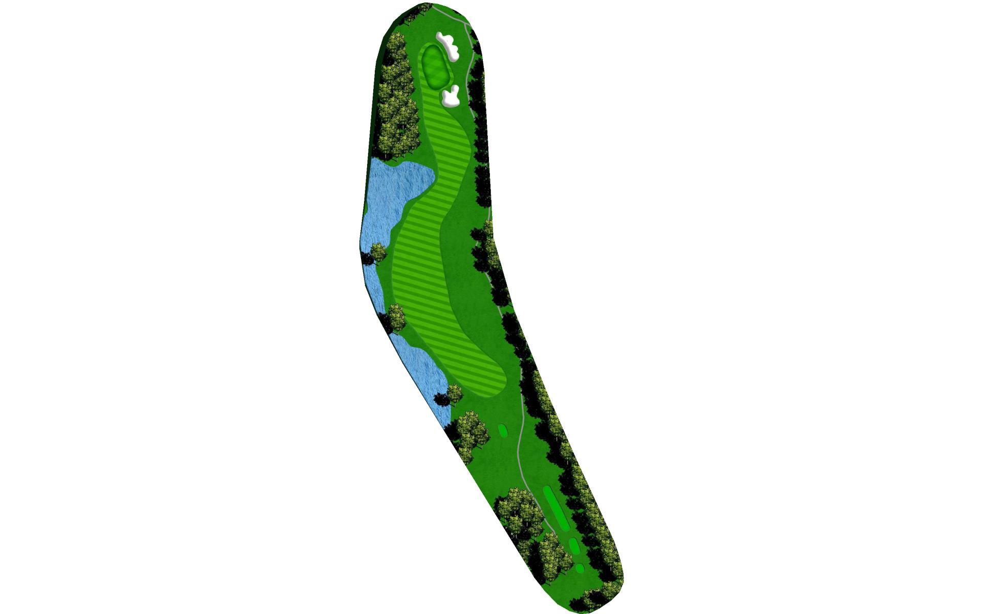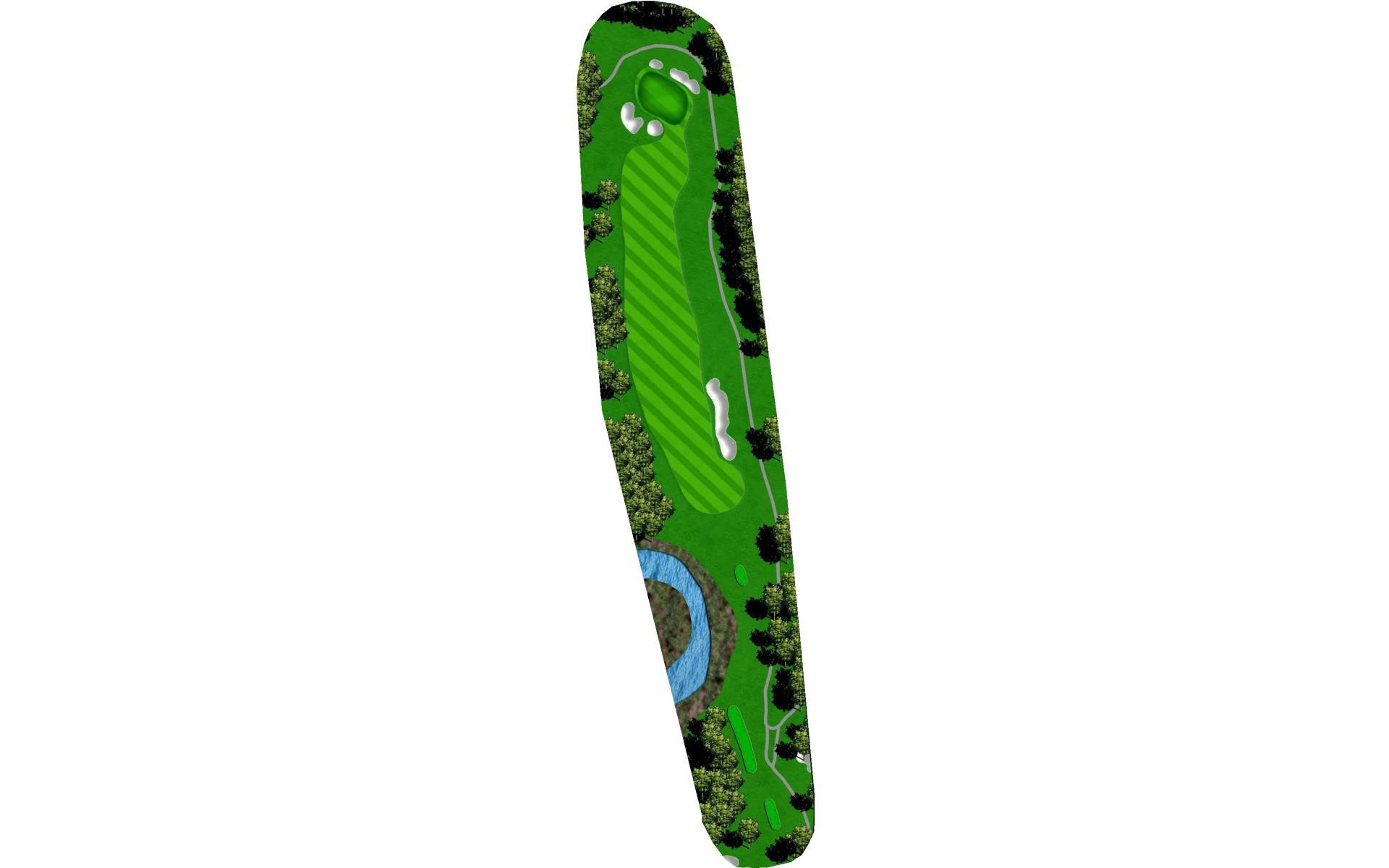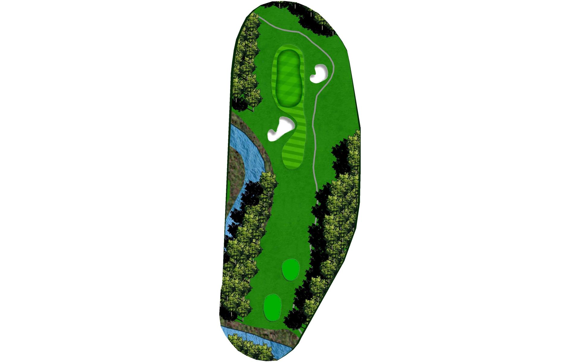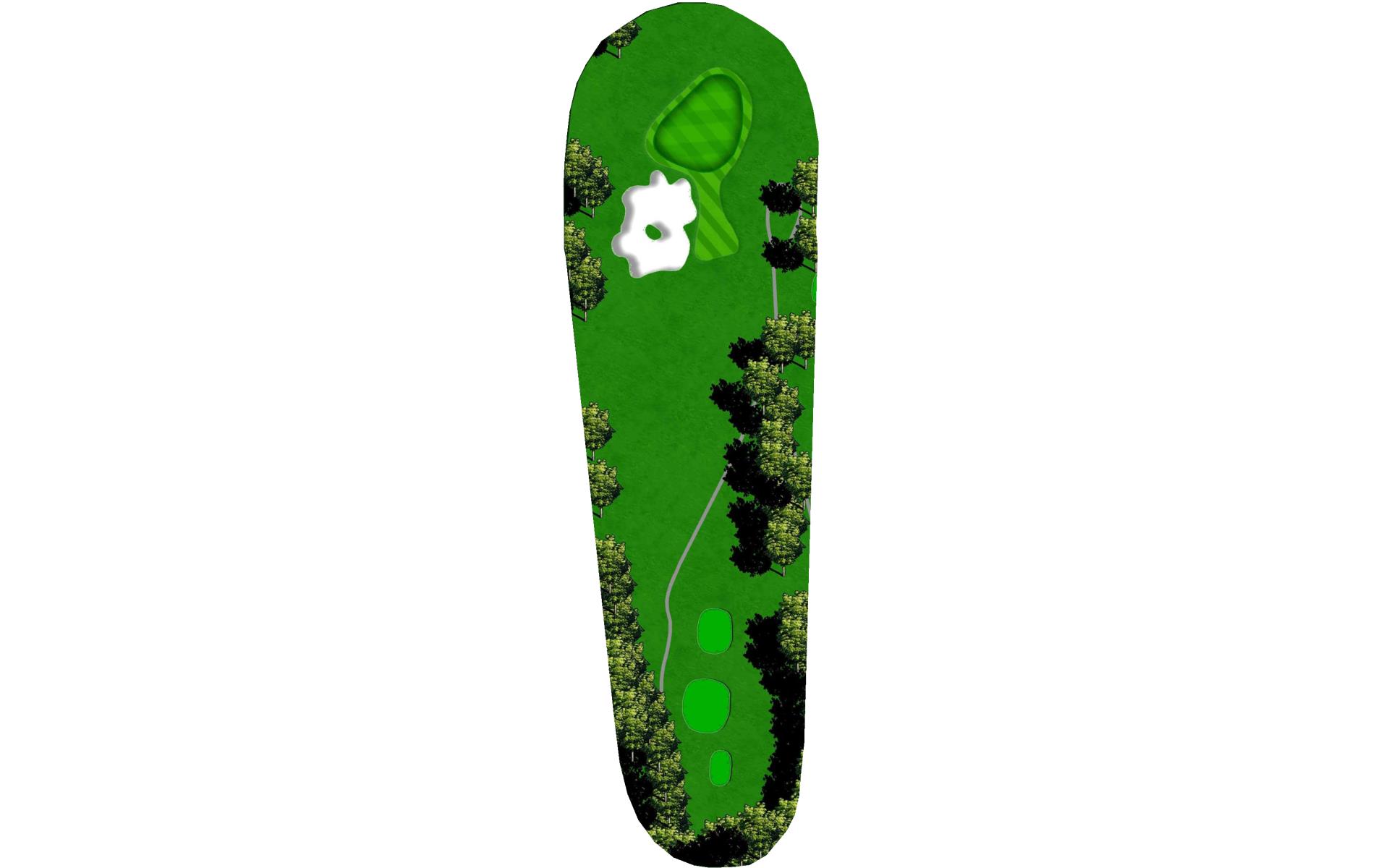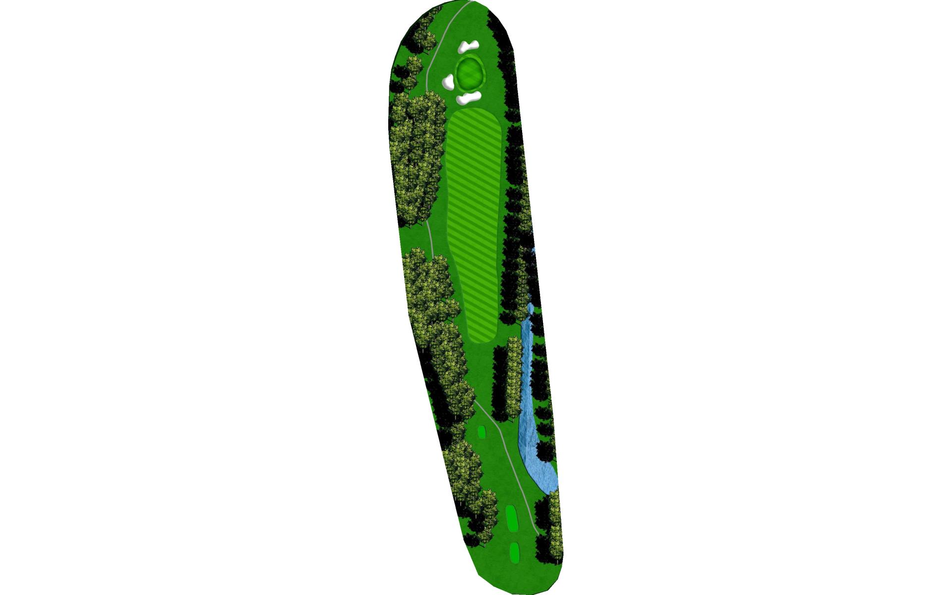 | Hit it straight or with a little draw to put yourself in a great position for a layup or to go for it. Wedge play into this green is preferred since the back of the green is guarded by a bunker and captures many a ball that goes long. |