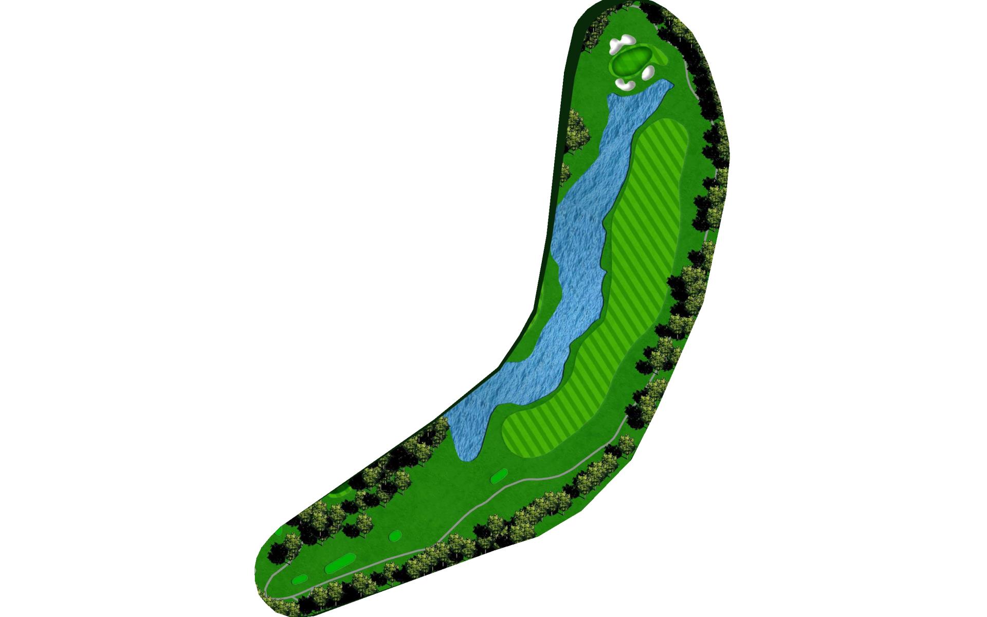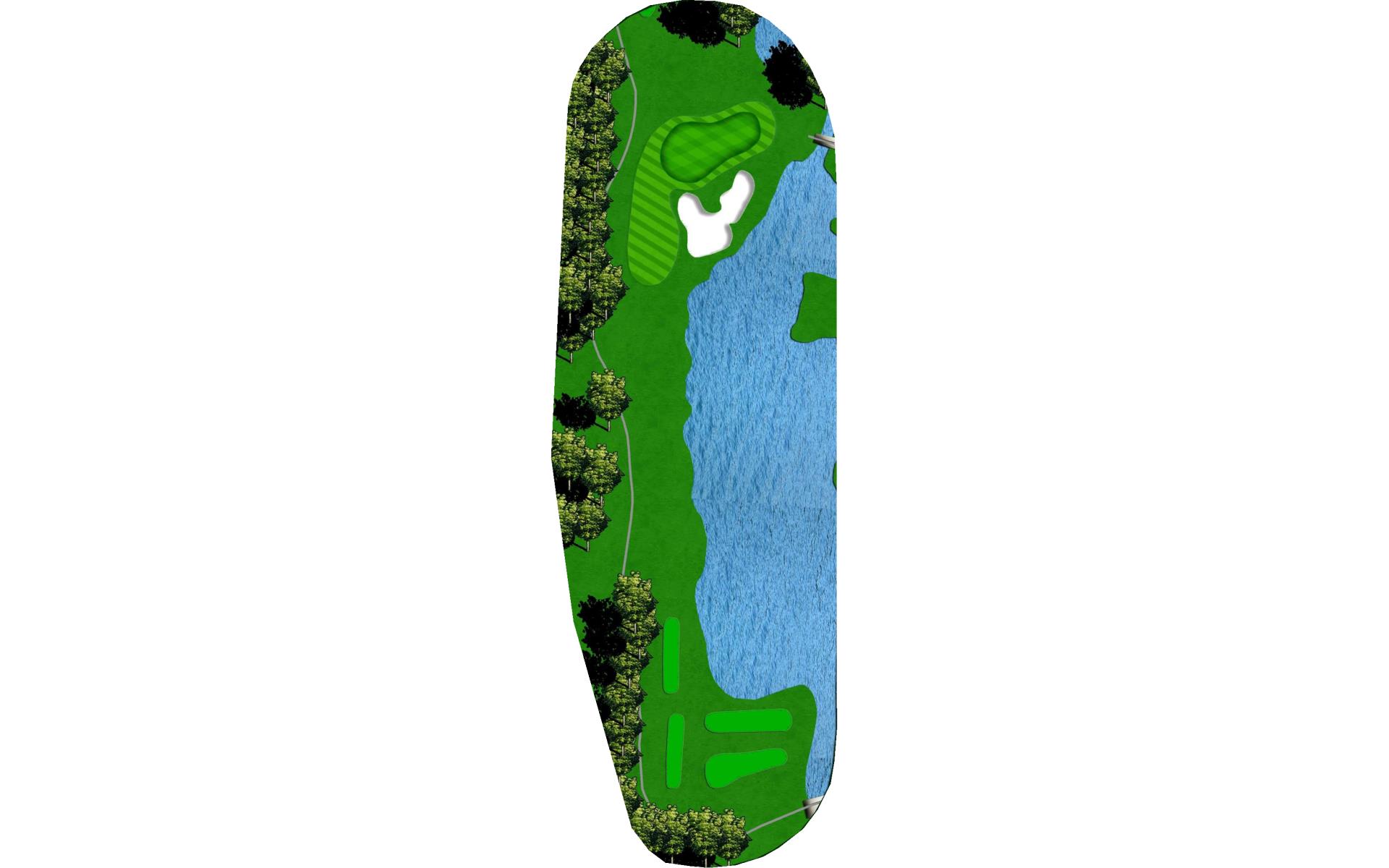| Coming down the home stretch. Another hole with a carry over water. Not a bad idea to take a little more club to make sure you clear the wall. No reason the lose the match on this hole. |
