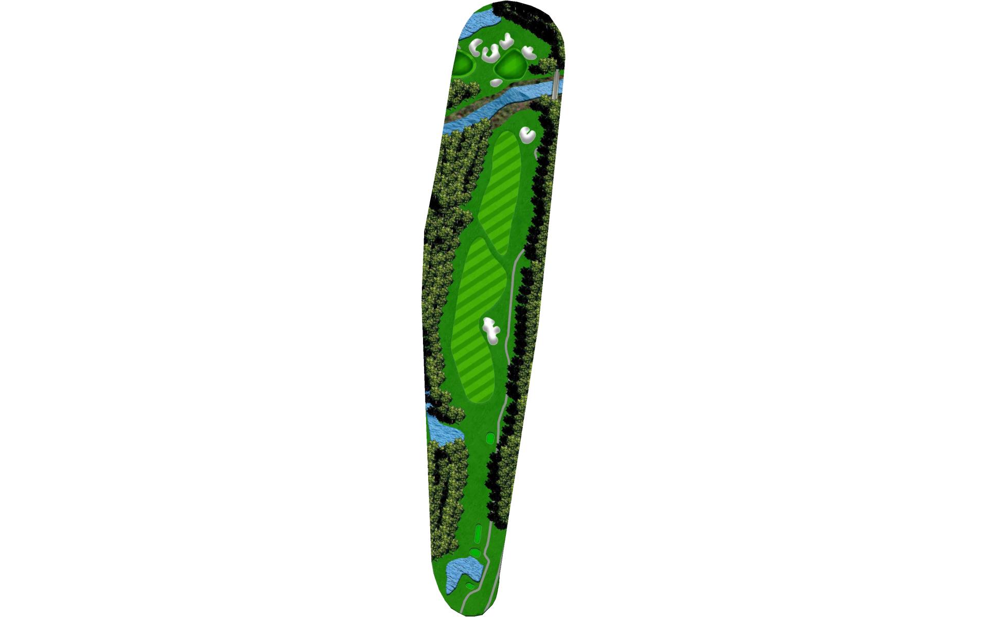 | Hit it long enough off the tee but short enough to avoid the creek. This will provide you a second shot to a green that is very long from front to back. Depending on where the pin is could be a difference in four clubs. |