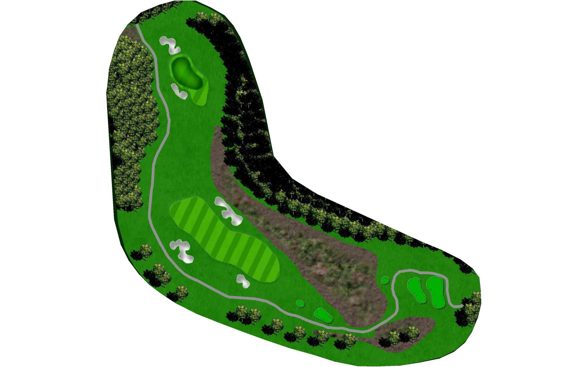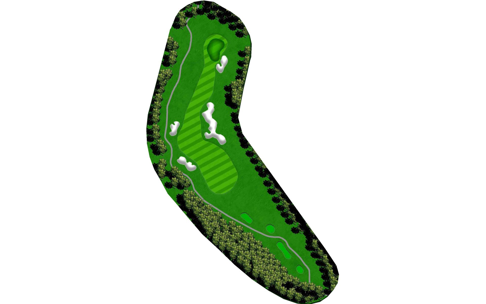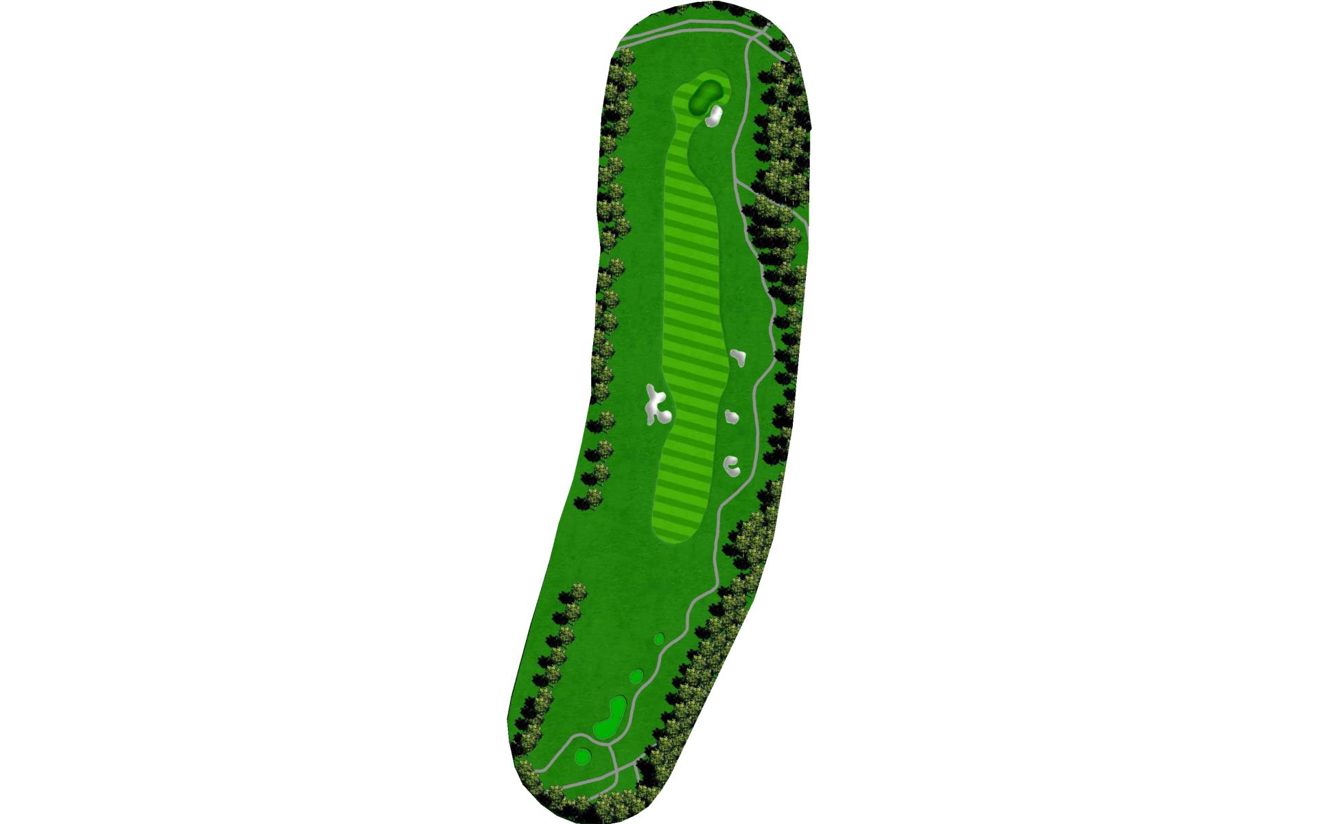 Tempting short Par 4 that is best played by laying up to 110 yards from tee in between the fairway bunkers. Green has a bowl on the right side that deflects in mishit balls to the right. Favor the left side of the green when pin is on the left